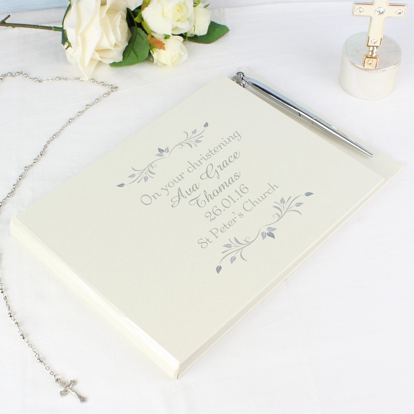 Personalised Any Message Sentiments Leaf Design Hardback Guest Book & Pen