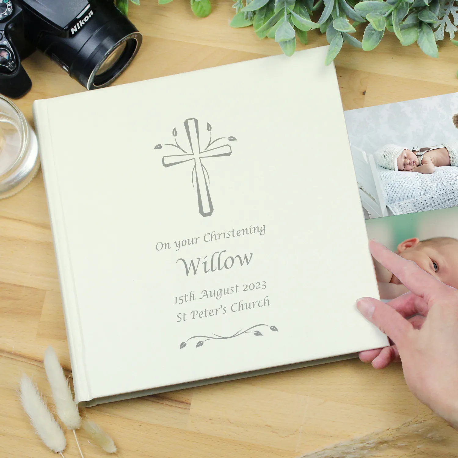 Personalised Any Message Silver Cross Motif Square Photo Album