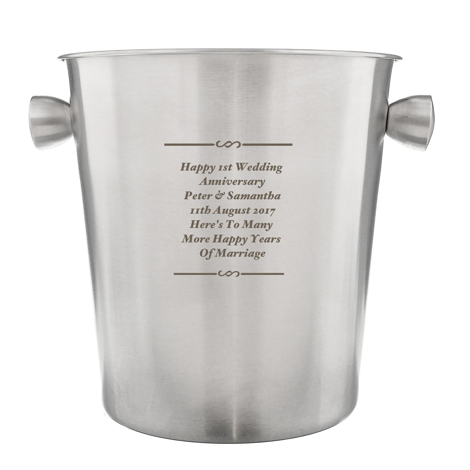 Add a touch of elegance to any celebration with this stylish and contemporary brushed stainless steel ice bucket. Beautifully crafted and ideal for gifting, this stunning piece can be personalised with your own heartfelt message, making it a truly memorable keepsake for anniversaries, birthdays, weddings, or any special occasion.