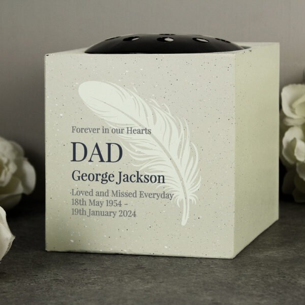 Personalised Any Message Feather Motif Memorial Resin Garden/Graveside Vase