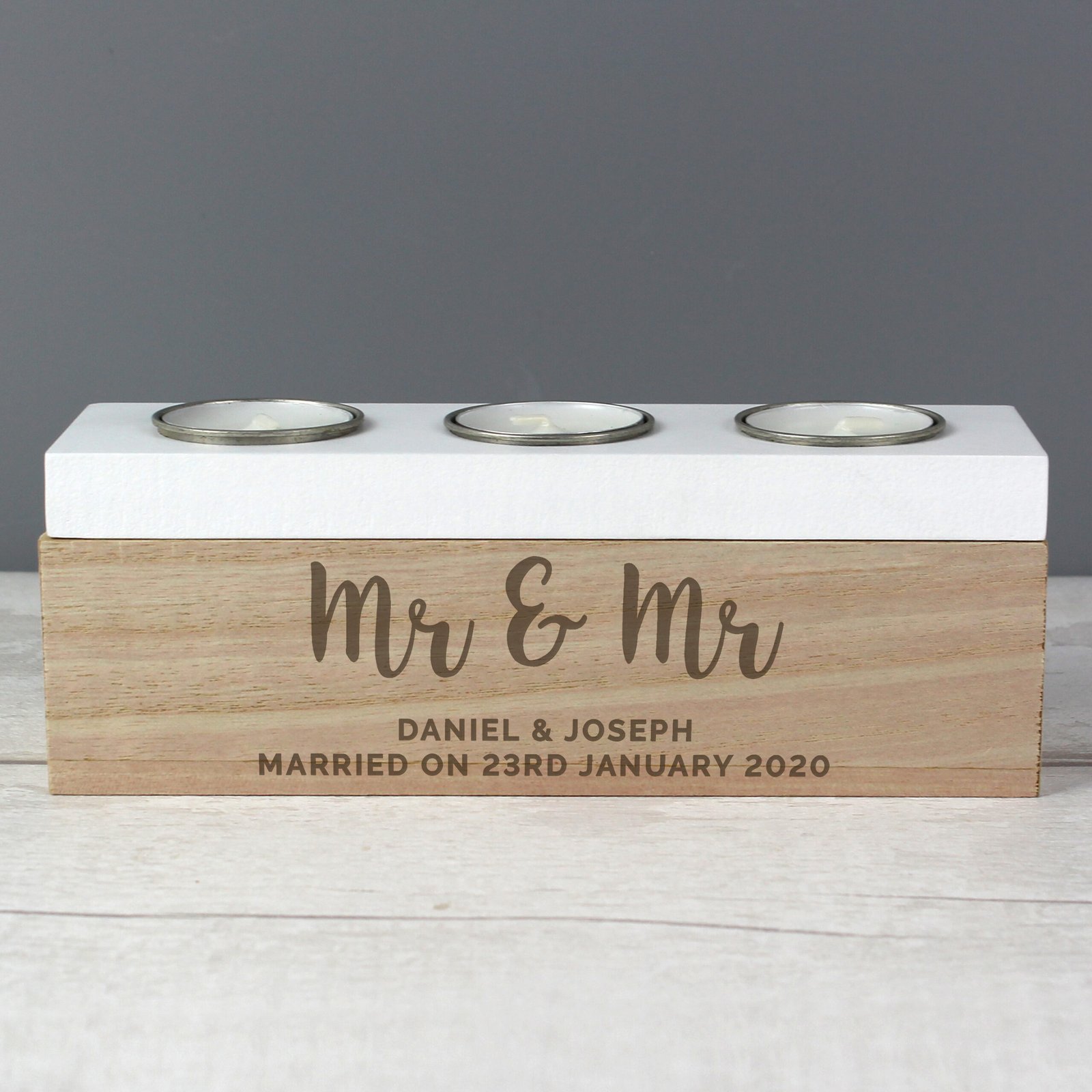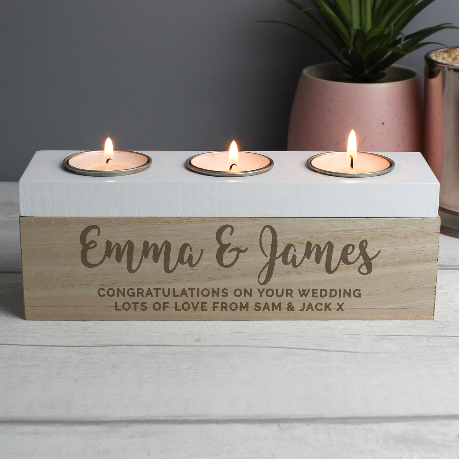 Personalised Any Message Wooden Triple Tea Light Candle Box