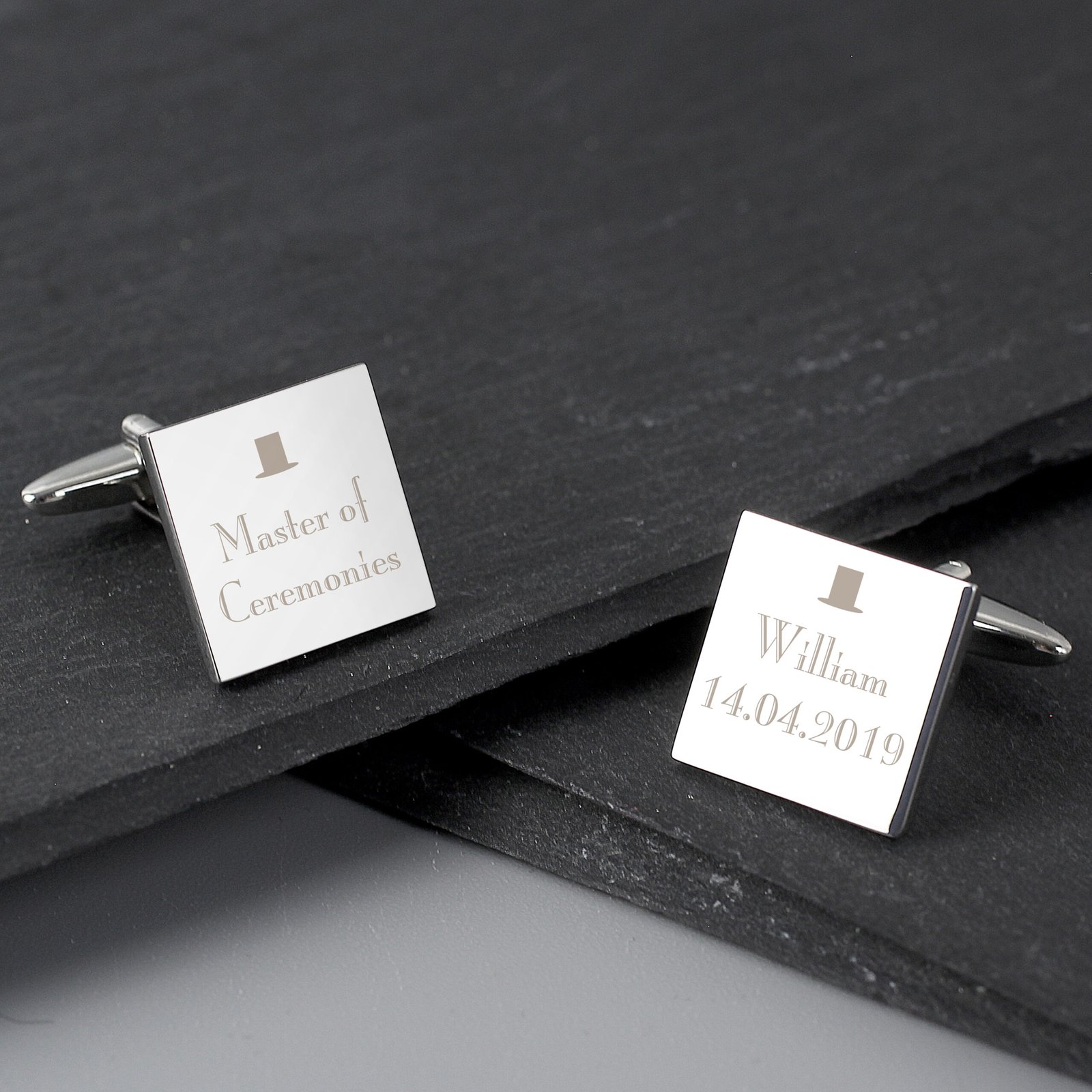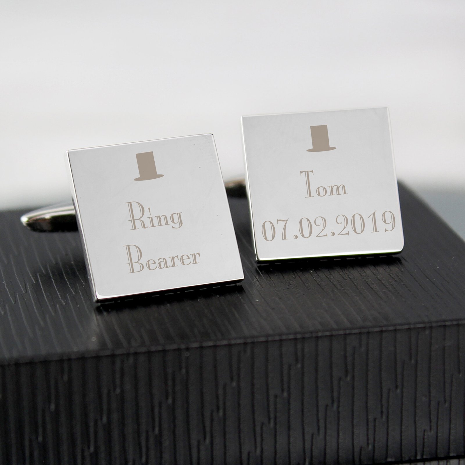 Personalised Any Role Decorative Top Hat Motif Wedding Silver Finish Square Cufflinks