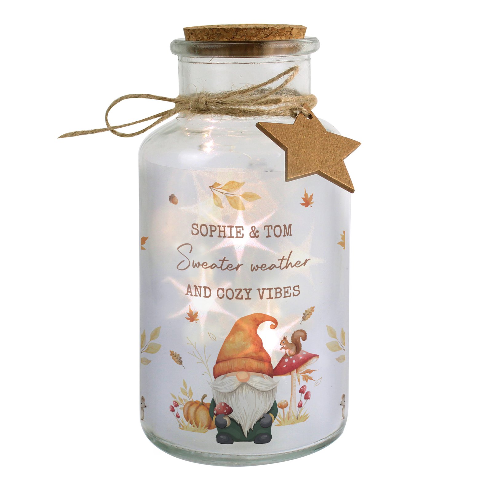 Personalised Autumn Gonk Design LED Light-Up Glass Jar