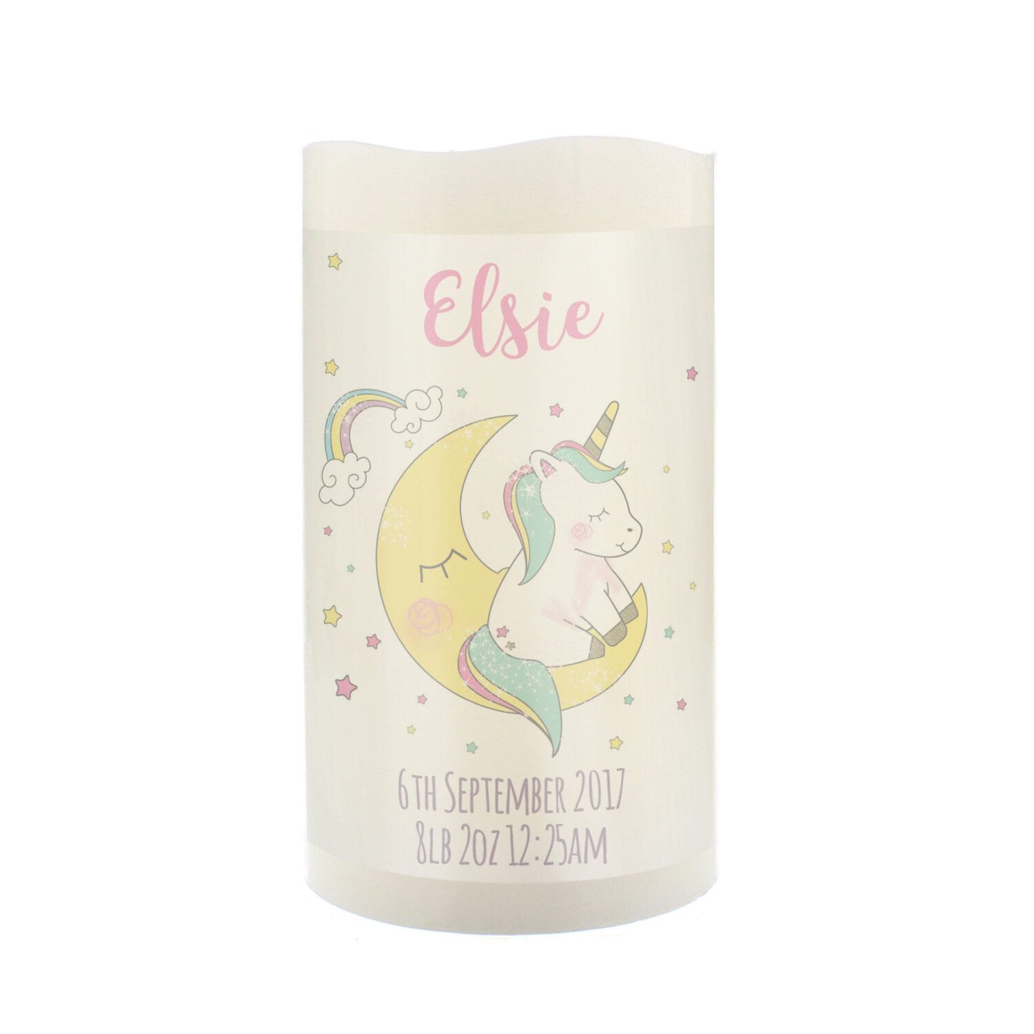 Personalised Baby Unicorn Design LED Night Light Pillar Candle