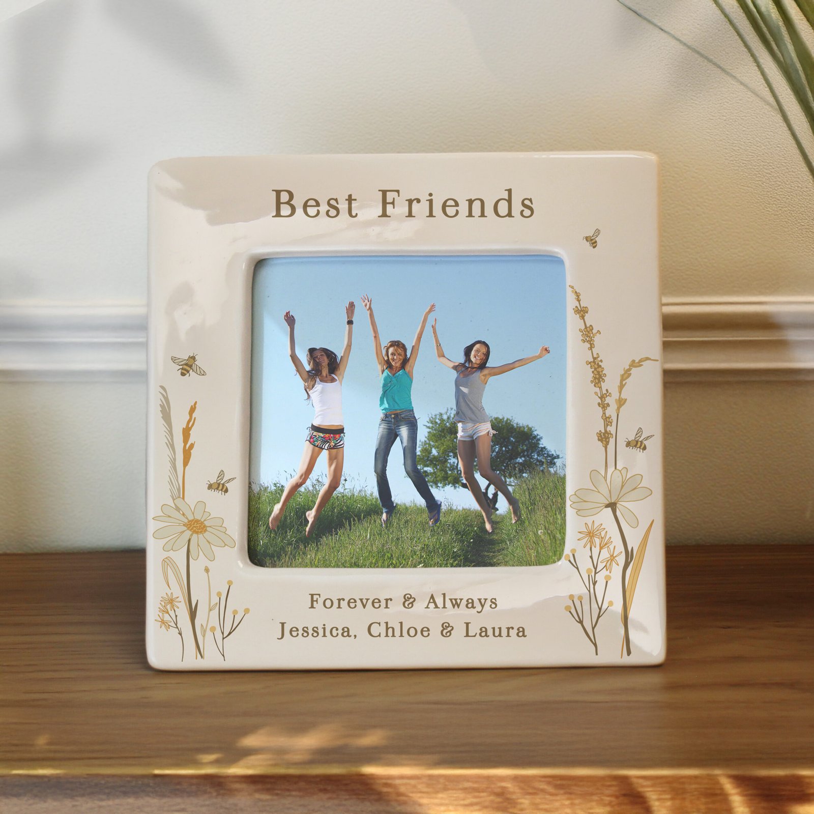 Personalised Bees & Daisy Design 4×4 Ceramic Photo Frame