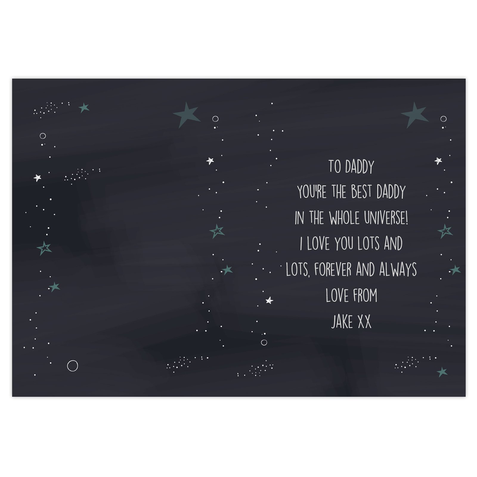 Looking for a card that’s as unique and special as they are? Our ‘Best… In The Universe’ card is perfect for birthdays, Father’s Day, or any occasion when you want to celebrate someone extraordinary. Personalise it to make them feel truly out of this world!