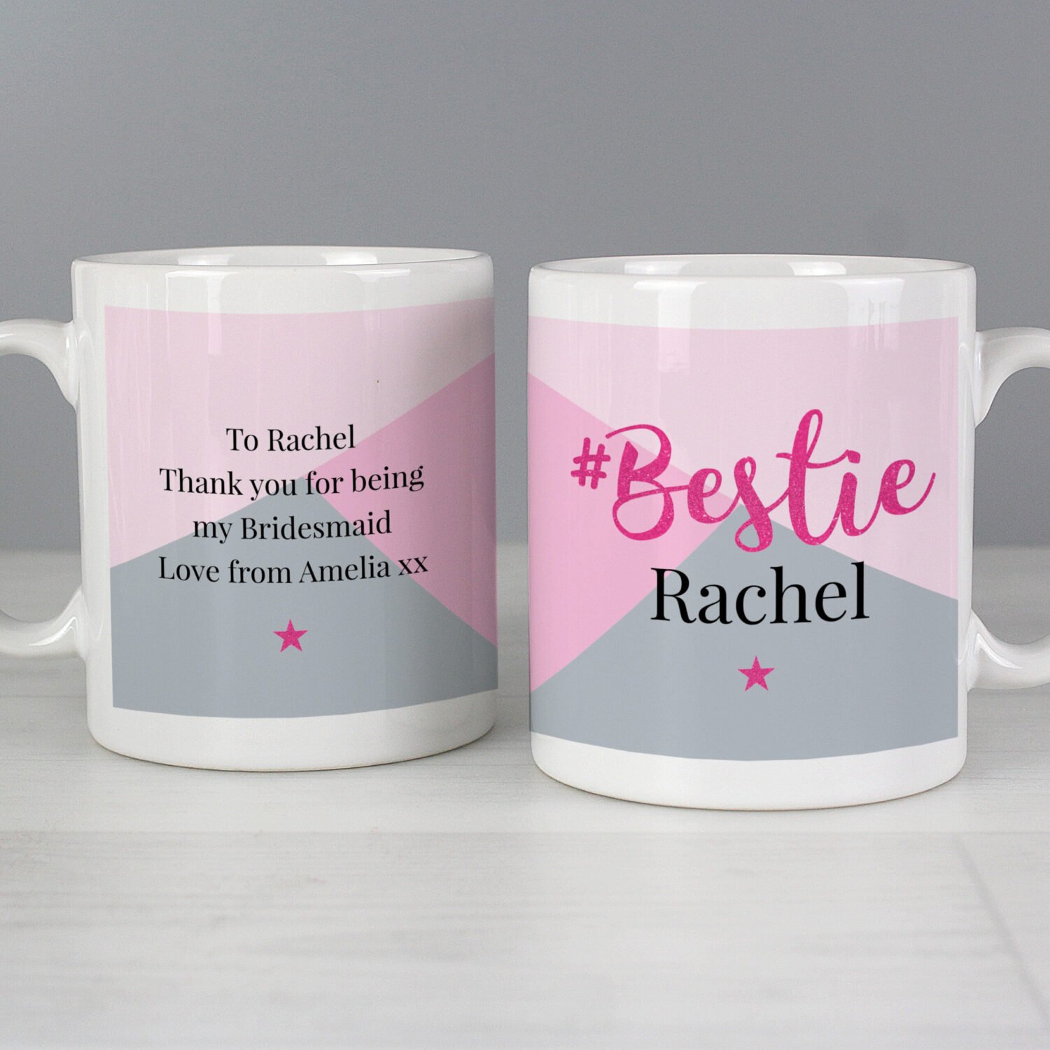 - Personalised Front: Add any name up to 20 characters to the front of the mug. ‘#Bestie’ is fixed text and forms part of the design.