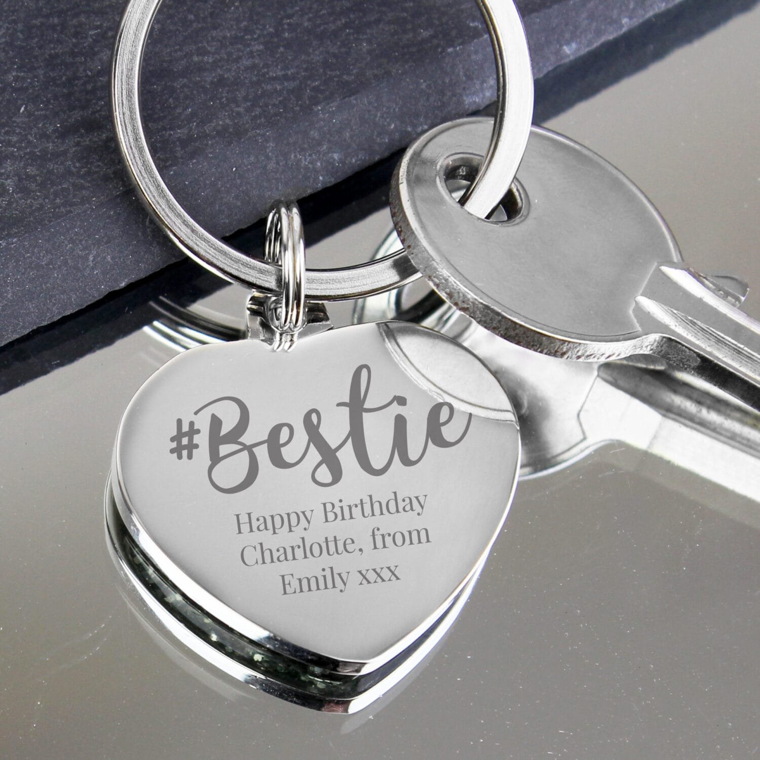 Personalised ‘#Bestie’ Diamante Silver Nickel Plated Heart Shaped Keyring