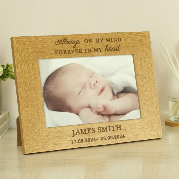 Personalised ‘Always On My Mind’ Memorial 6×4 Landscape Oak Finish Photo Frame