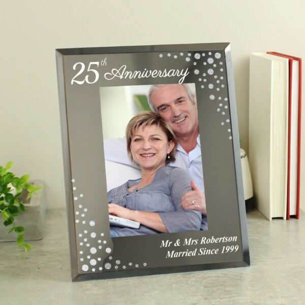 Personalised Anniversary Diamante 4×6 Portrait Mirrored Glass Photo Frame