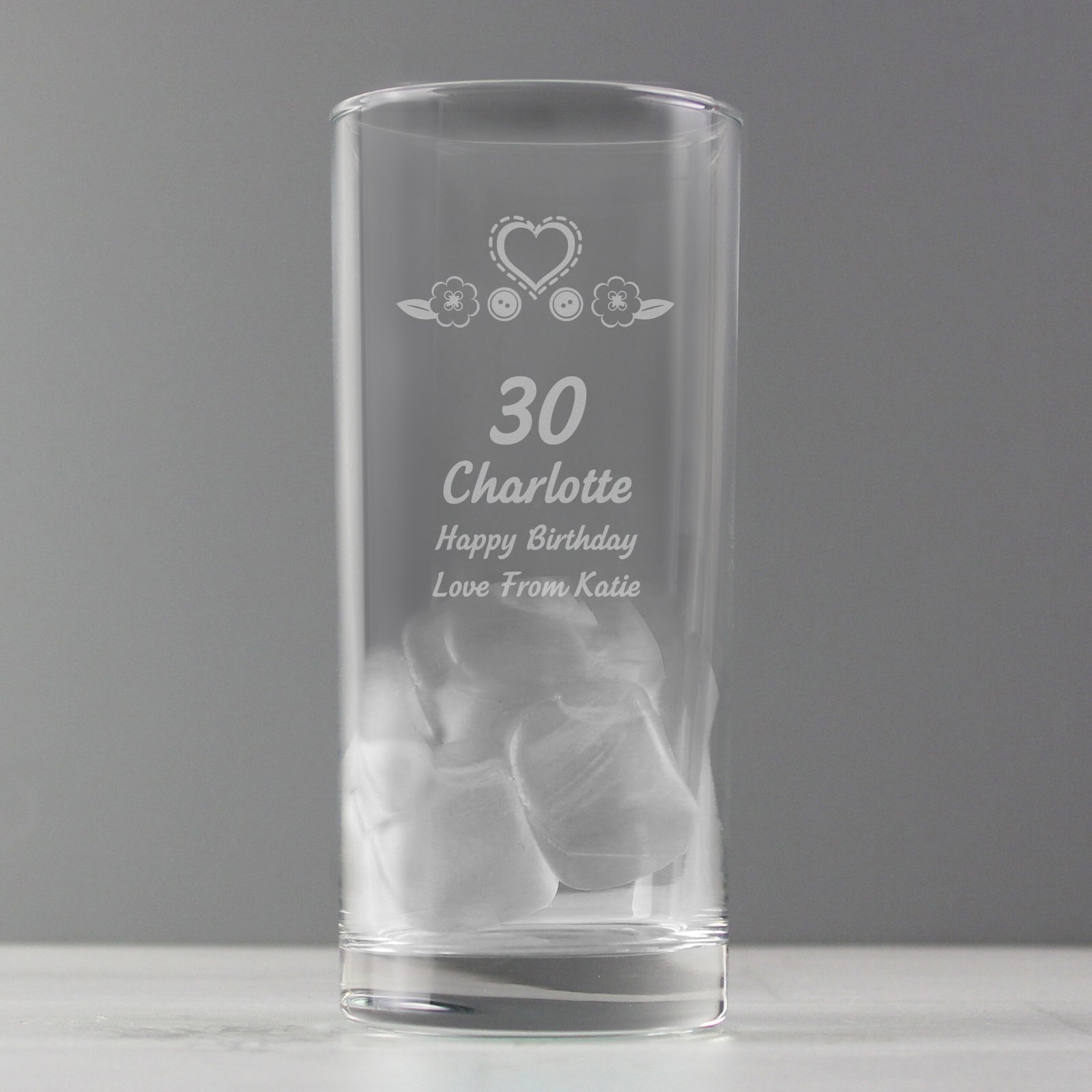 Celebrate her special day in style with this charming Personalised Birthday Craft Design Hi-Ball Glass – the perfect gift for a birthday toast with a personal touch!