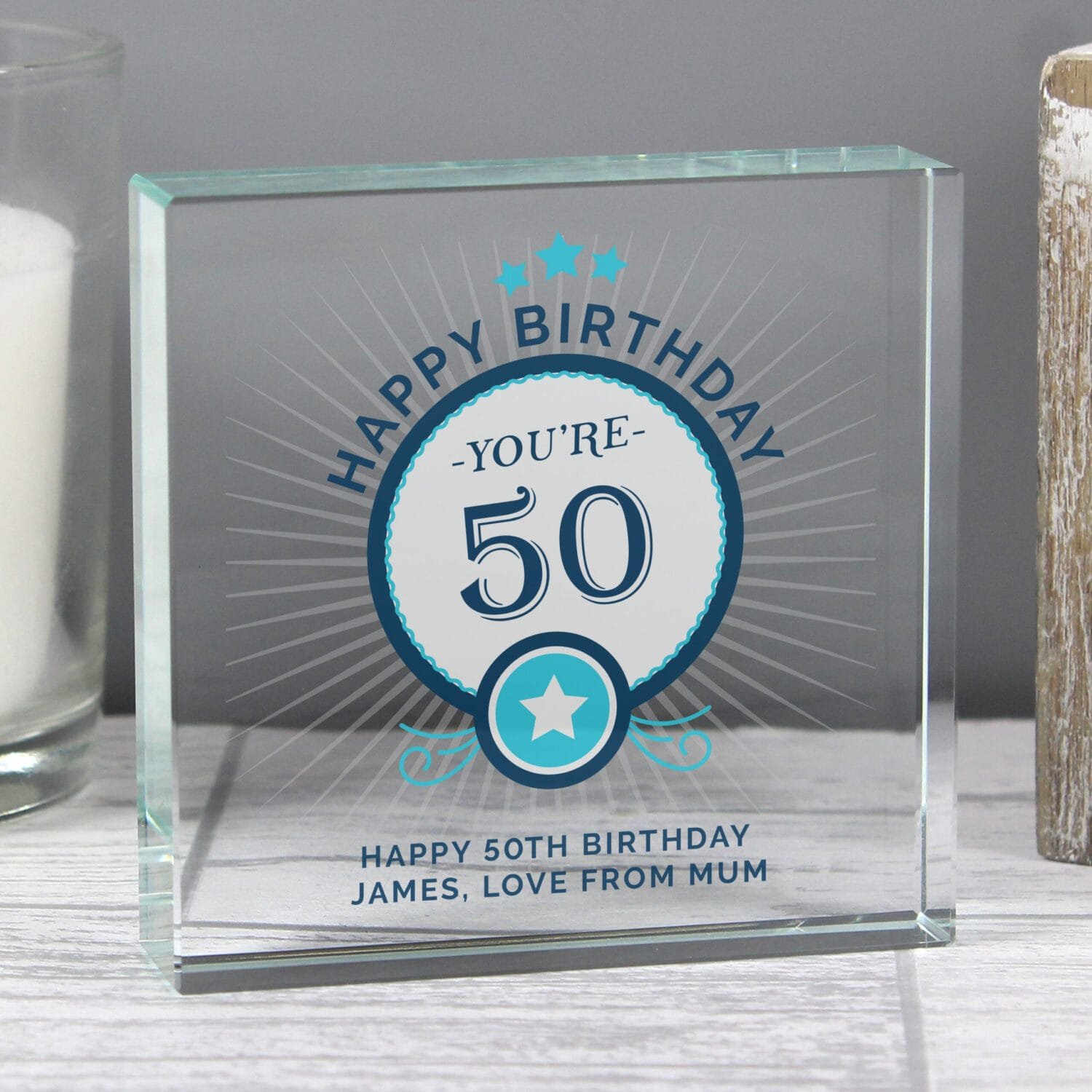 Celebrate a milestone birthday with this striking Personalised Blue ‘Happy Birthday’ Star Motif Crystal Glass Token. Featuring a bold star design and custom details, this high-quality keepsake is the perfect way to mark a special age in style.