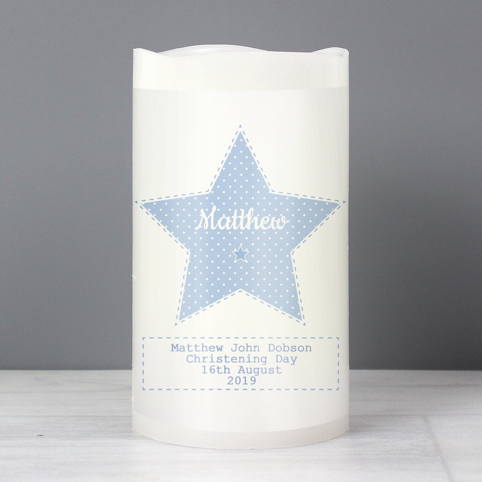 Personalised Blue Stitch & Dot Star Design Night Light LED Pillar Candle