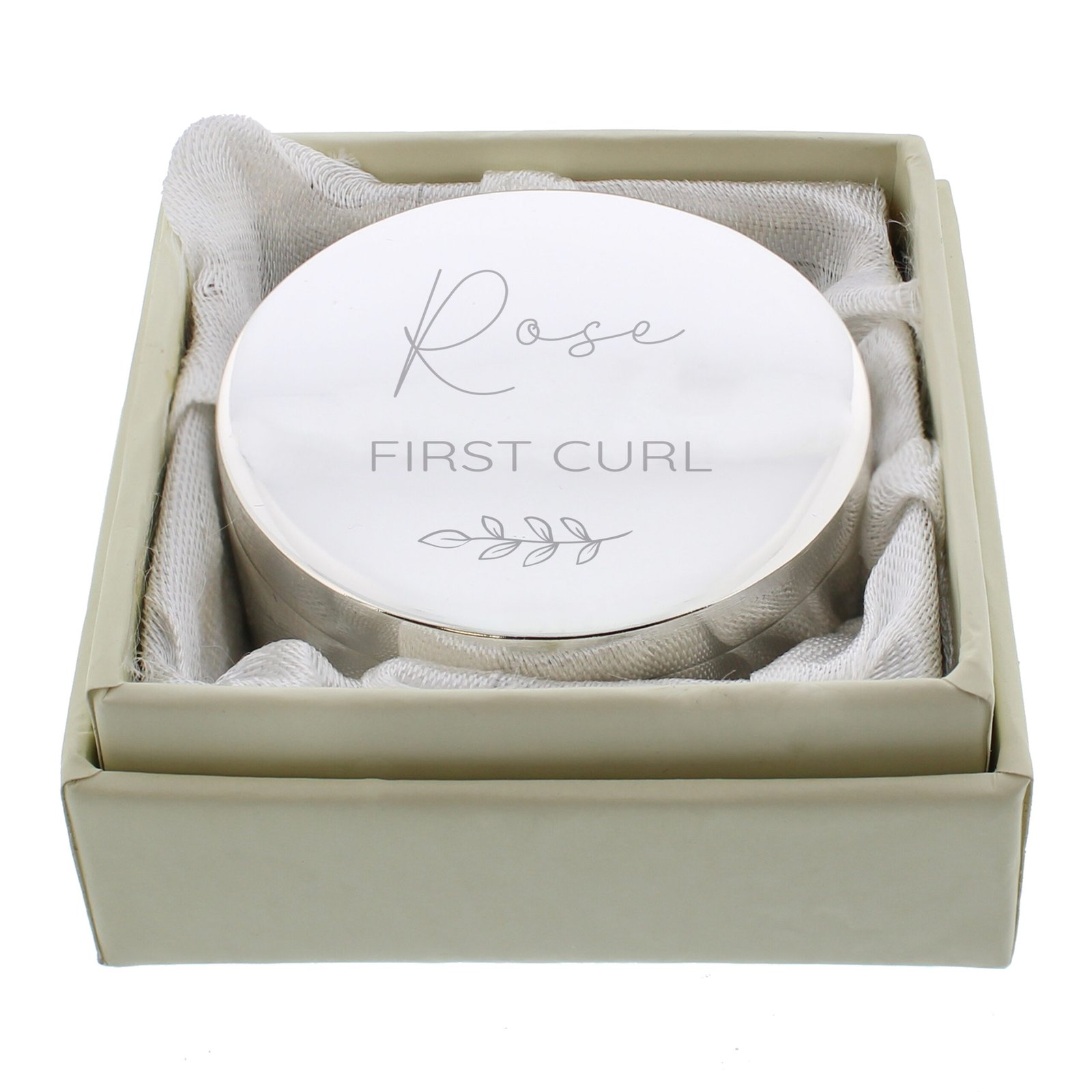 Personalised Botanical Design First Tooth/Curl Round Silver Nickel Plated Trinket Box