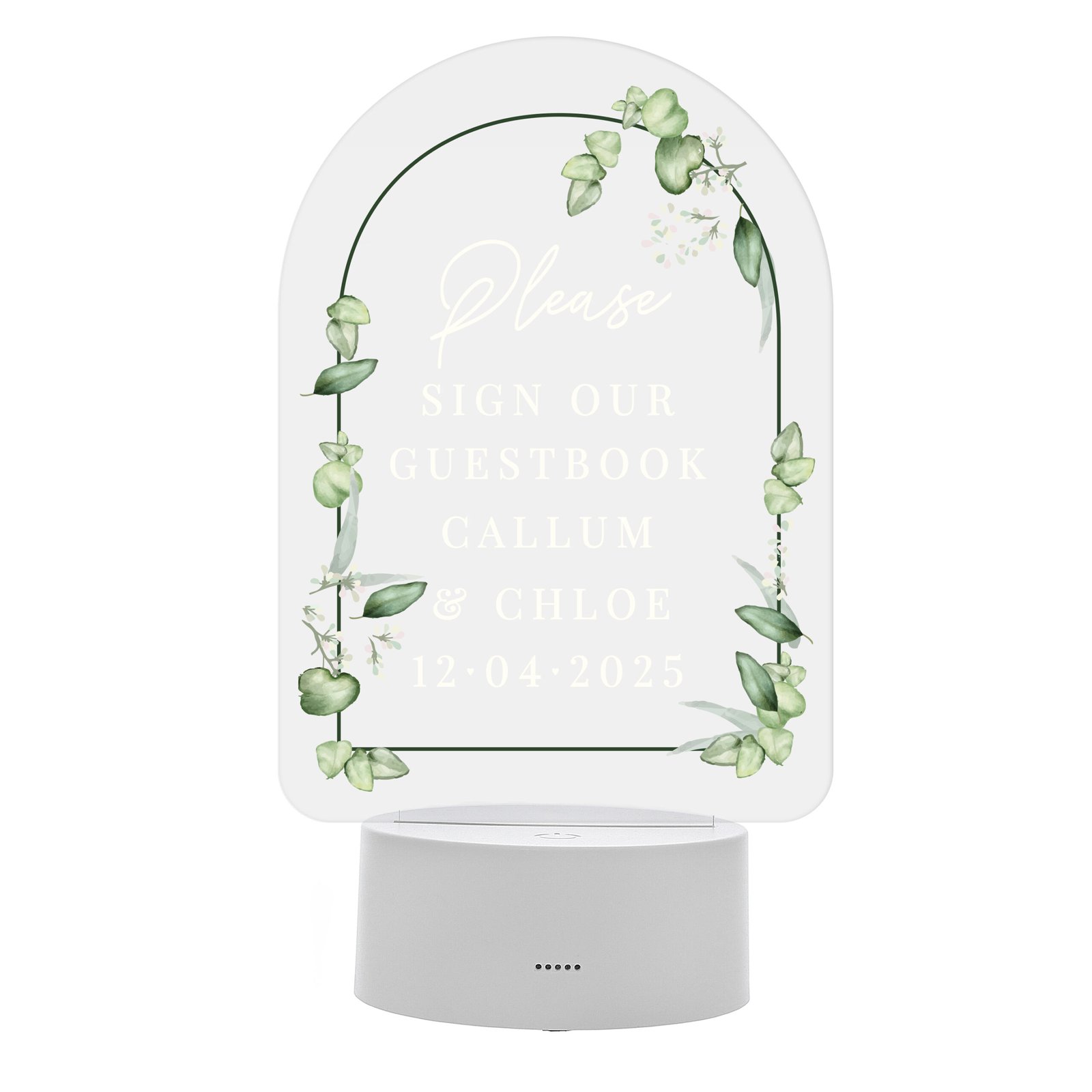 Personalised Botanical Design Wedding LED Colour Changing Sign