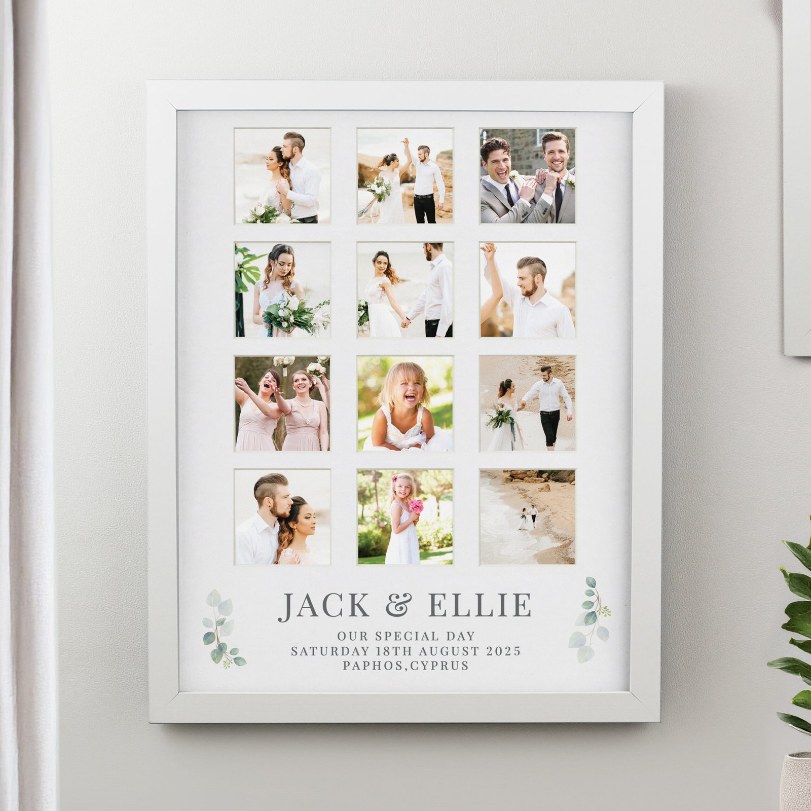 Personalised Botanical Design Wedding Multi Photo White Frame