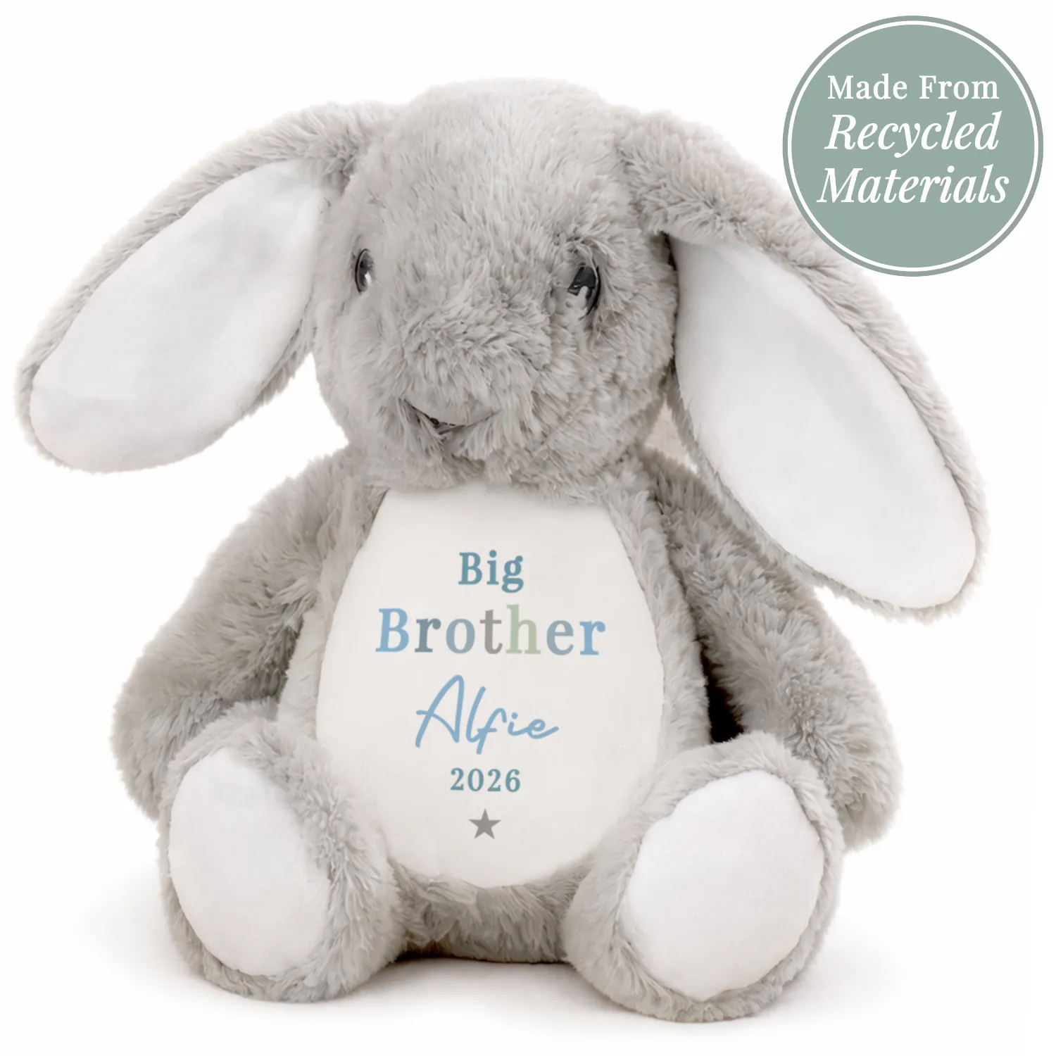Celebrate the arrival of a new sibling or a special milestone with this adorable Personalised ‘Brother’ Blue Text Star Motif Plush Bunny Rabbit. Soft, cuddly, and full of charm, this sweet bunny makes a thoughtful keepsake gift for a proud big brother or little brother.