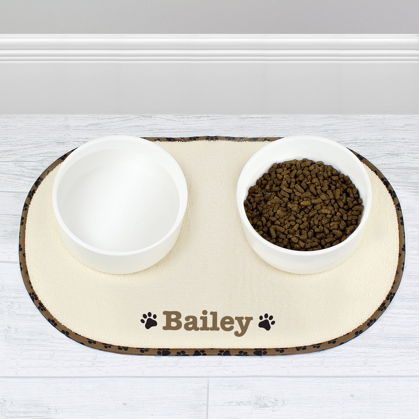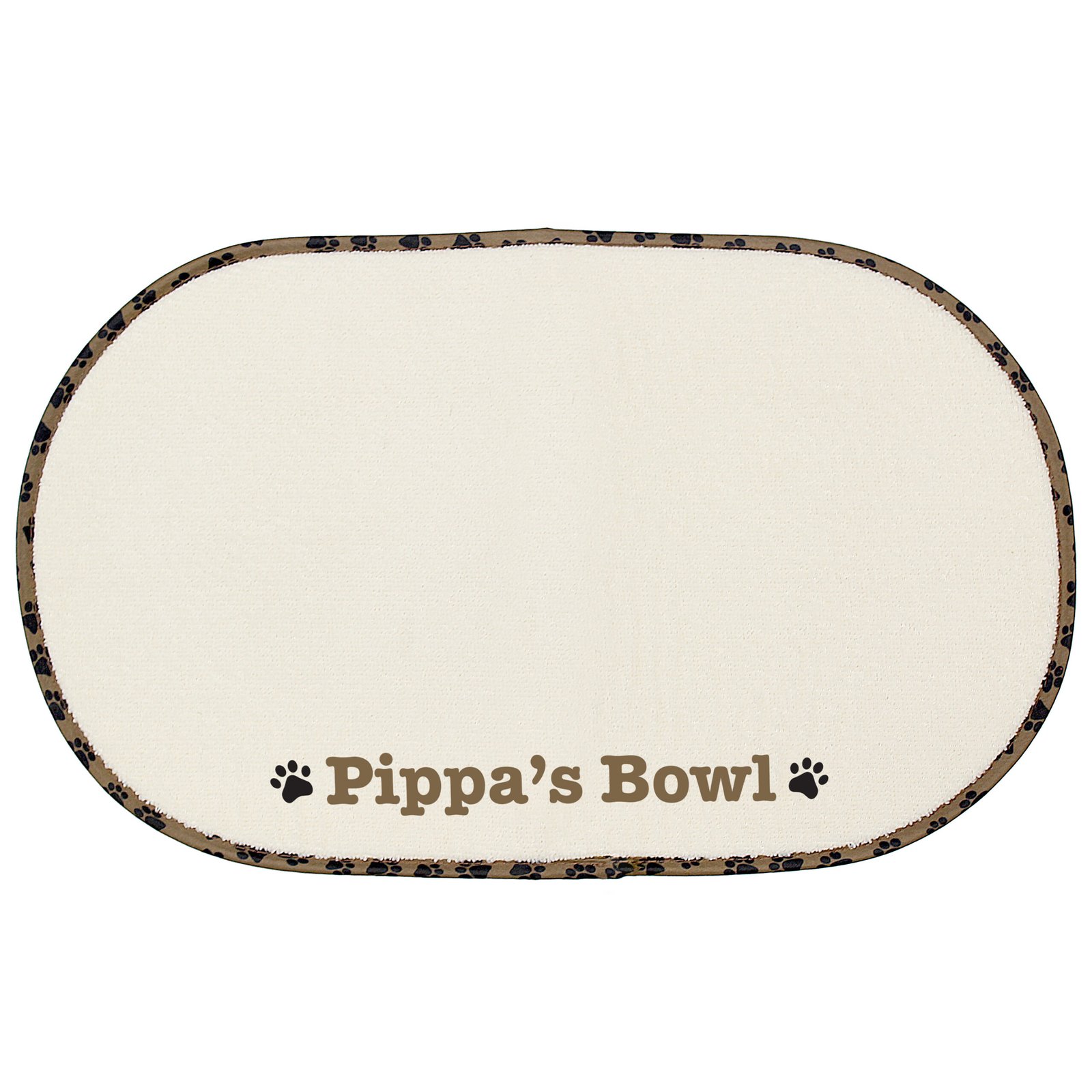 Personalised Brown Microfibre Paw Print Motif Pet Bowl Mat