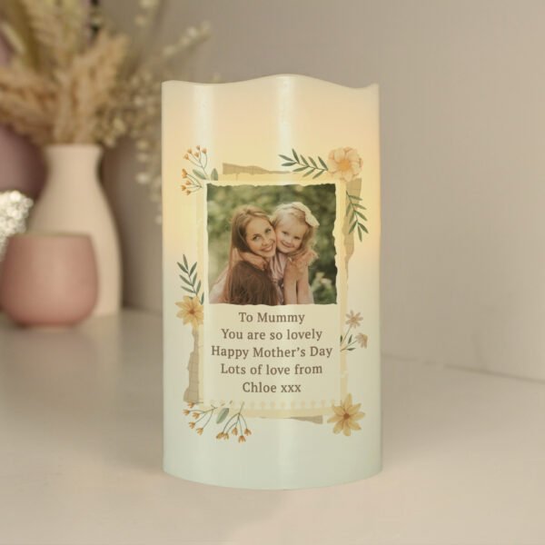Personalised Any Message Wild Flowers Design Photo Upload LED Pillar Candle