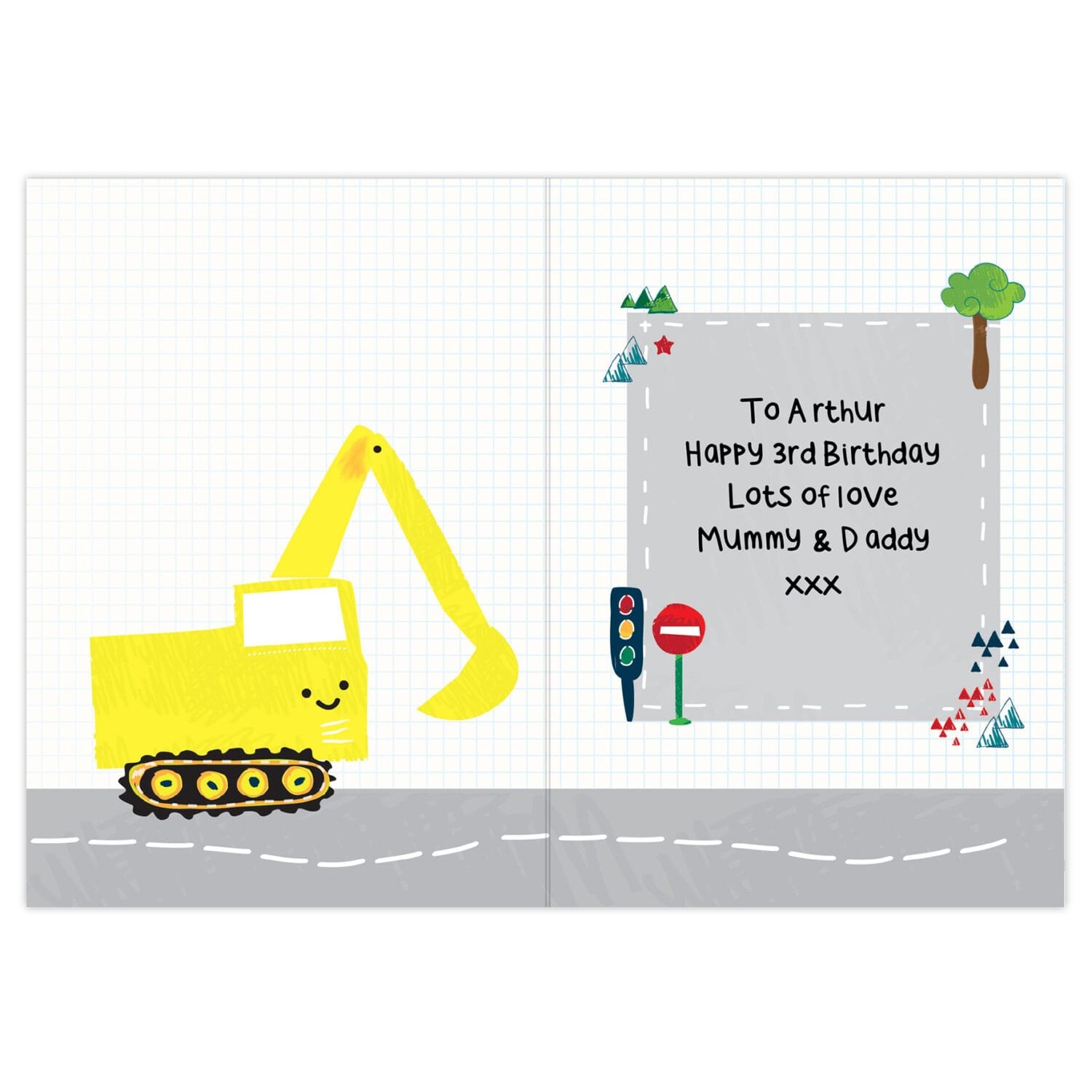 Make their birthday one to remember with this personalised digger card – a joyful way to send your love on their special day!