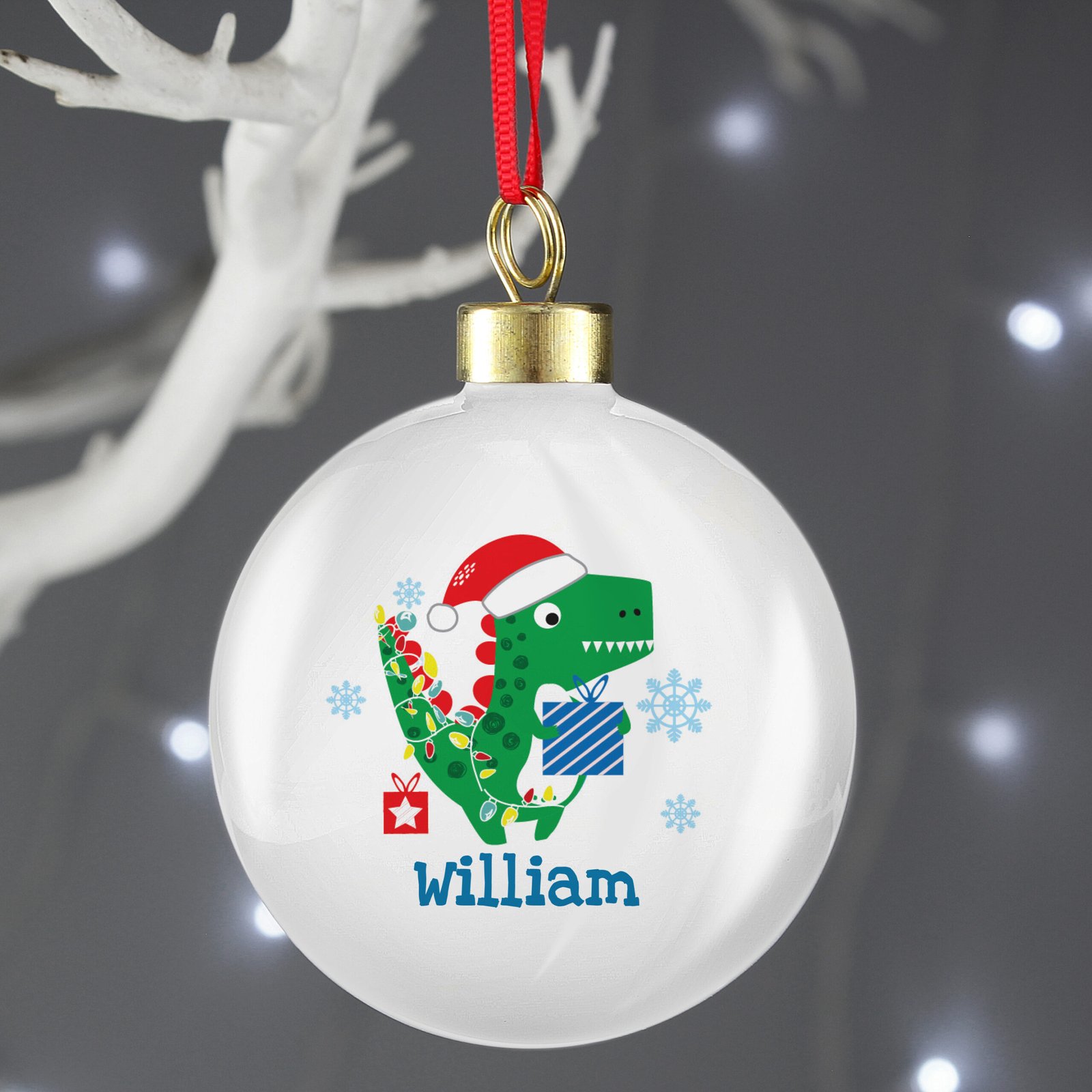 Personalised Children’s Dinosaur ‘Have a Roarsome Christmas’ Ceramic Bauble