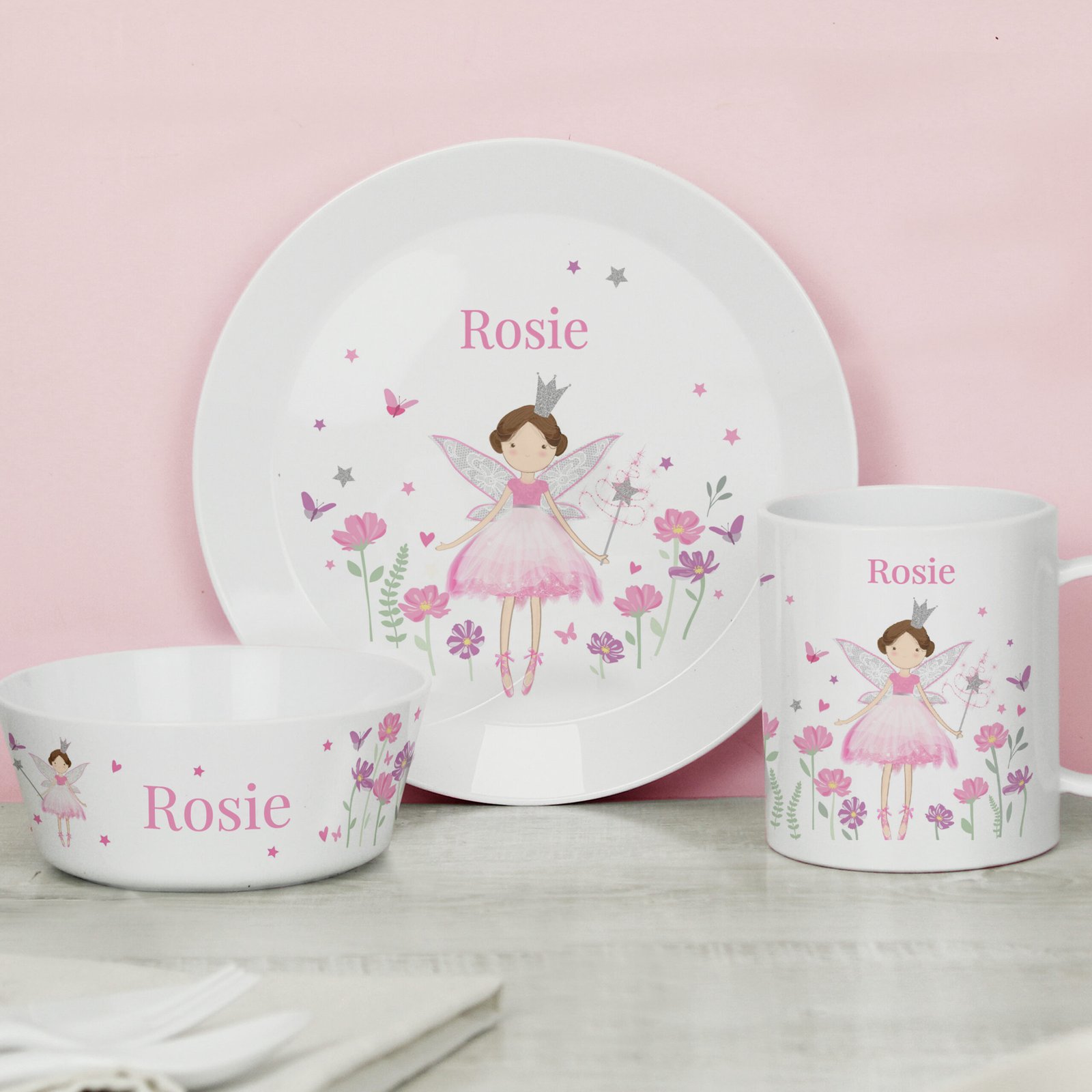 Personalised Children’s Fairy Princess Design 3-Piece Plastic Breakfast Set