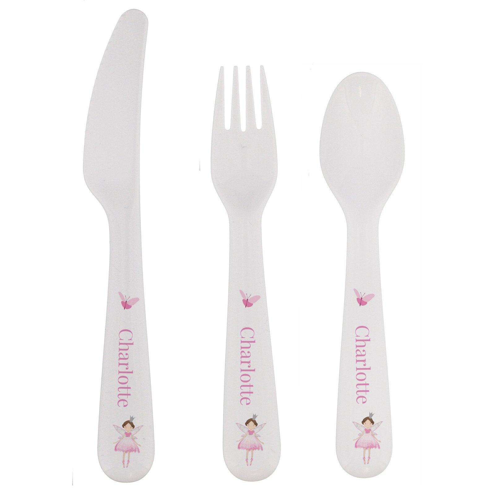 Personalised Children’s Fairy Princess Design 3-Piece Plastic Cutlery Set