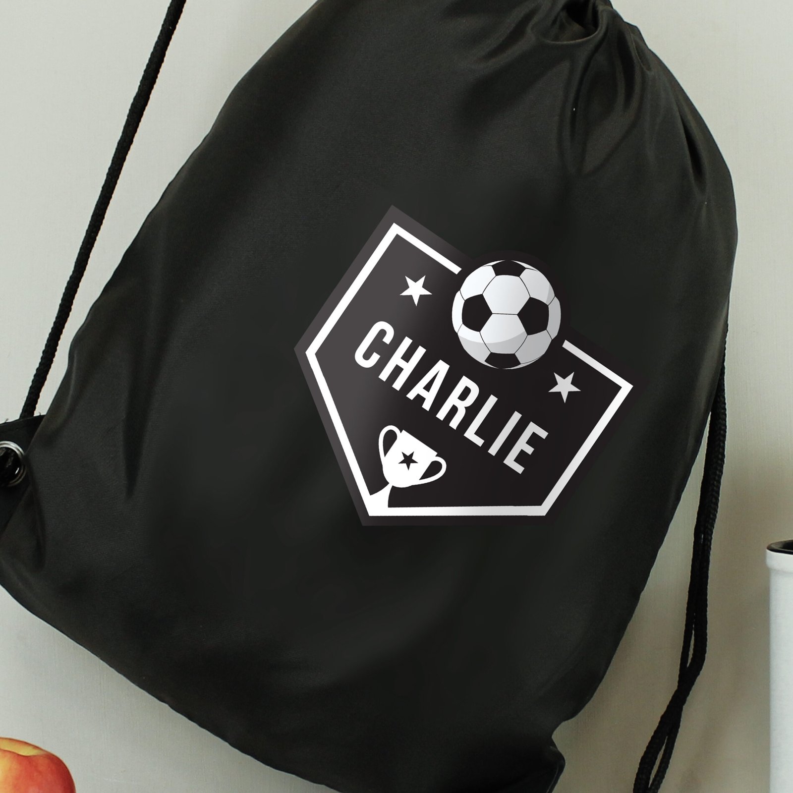Perfect for football fans, this stylish black kit bag is both practical and fun! Featuring a bold football shield design, it’s ideal for school, sports, and swimming. Add a personal touch with your child’s name for a bag that’s uniquely theirs.