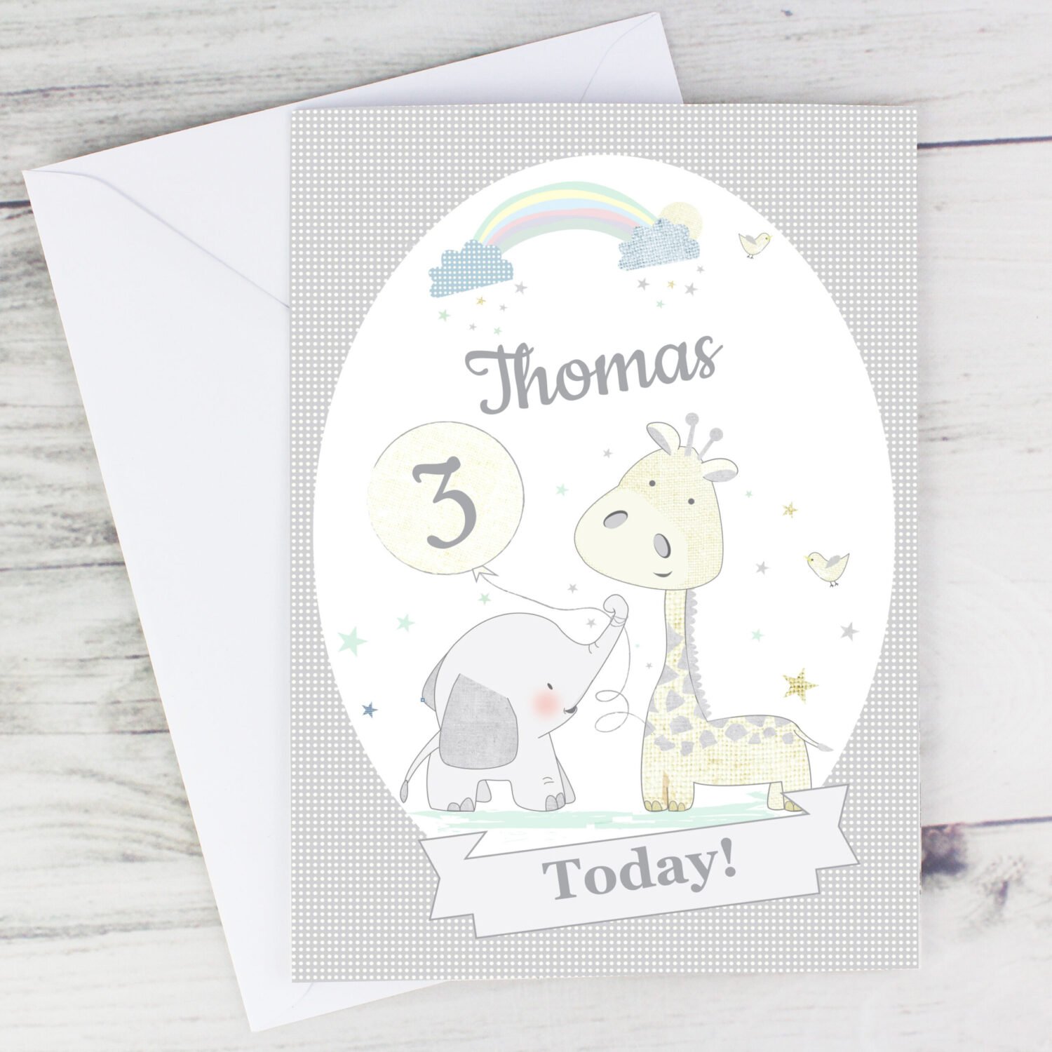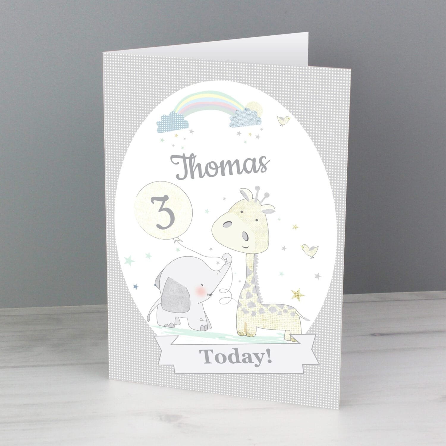 Personalised Children’s Hessian Giraffe & Elephant Design Birthday Card