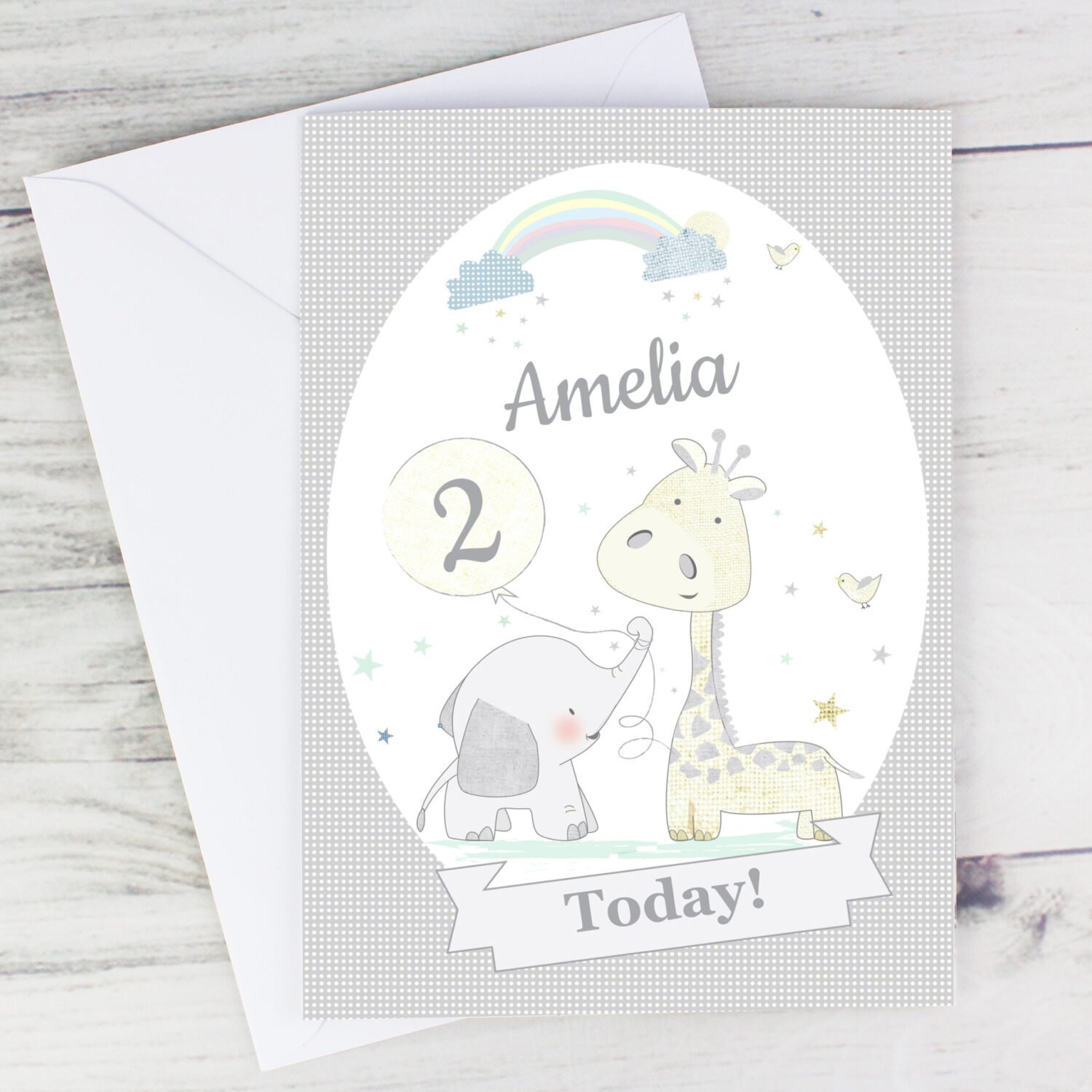 Make a little one’s birthday extra special with this Personalised Hessian Giraffe & Elephant Birthday Card. With its charming animal design and personalised details, this adorable card is perfect for celebrating their big day in a memorable way.