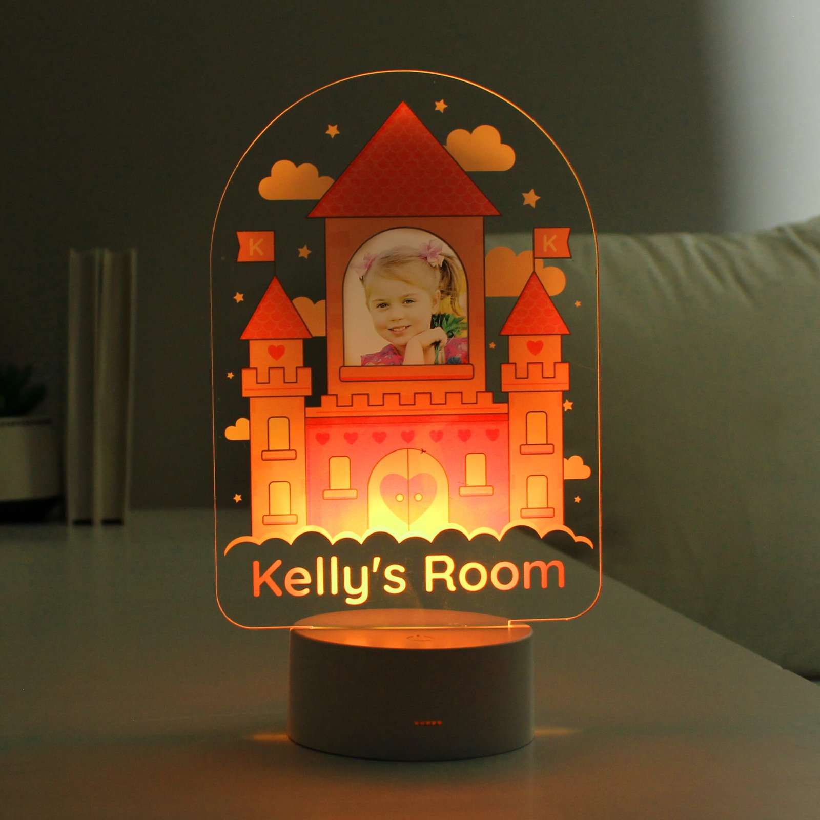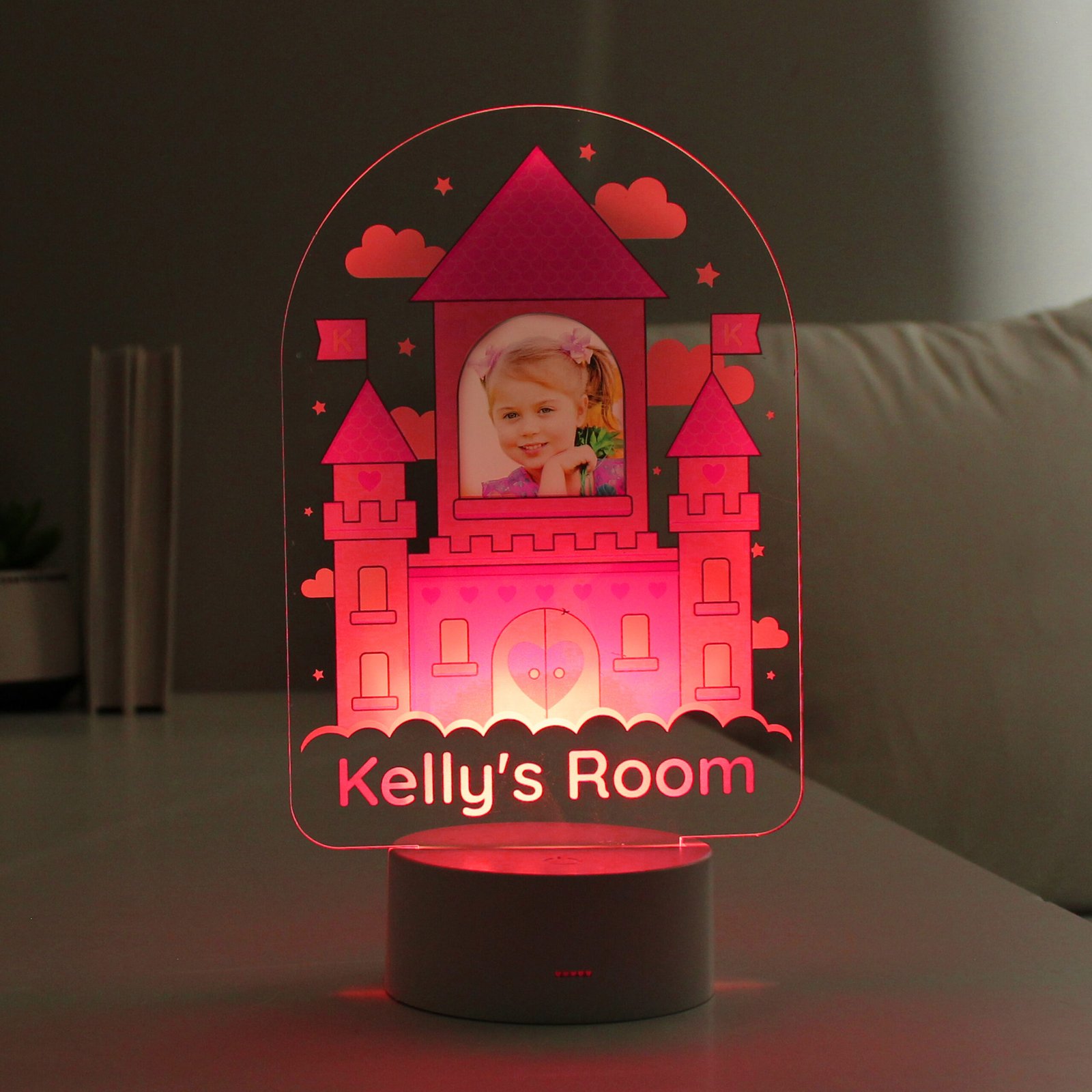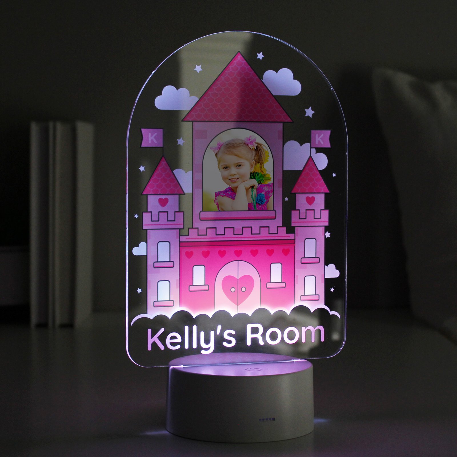 Personalised Children’s Pink Castle Photo Upload LED Colour Changing Night Light
