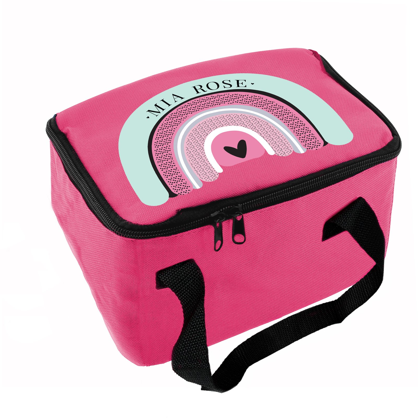 Personalised Children’s Rainbow Design Pink Lunch Bag
