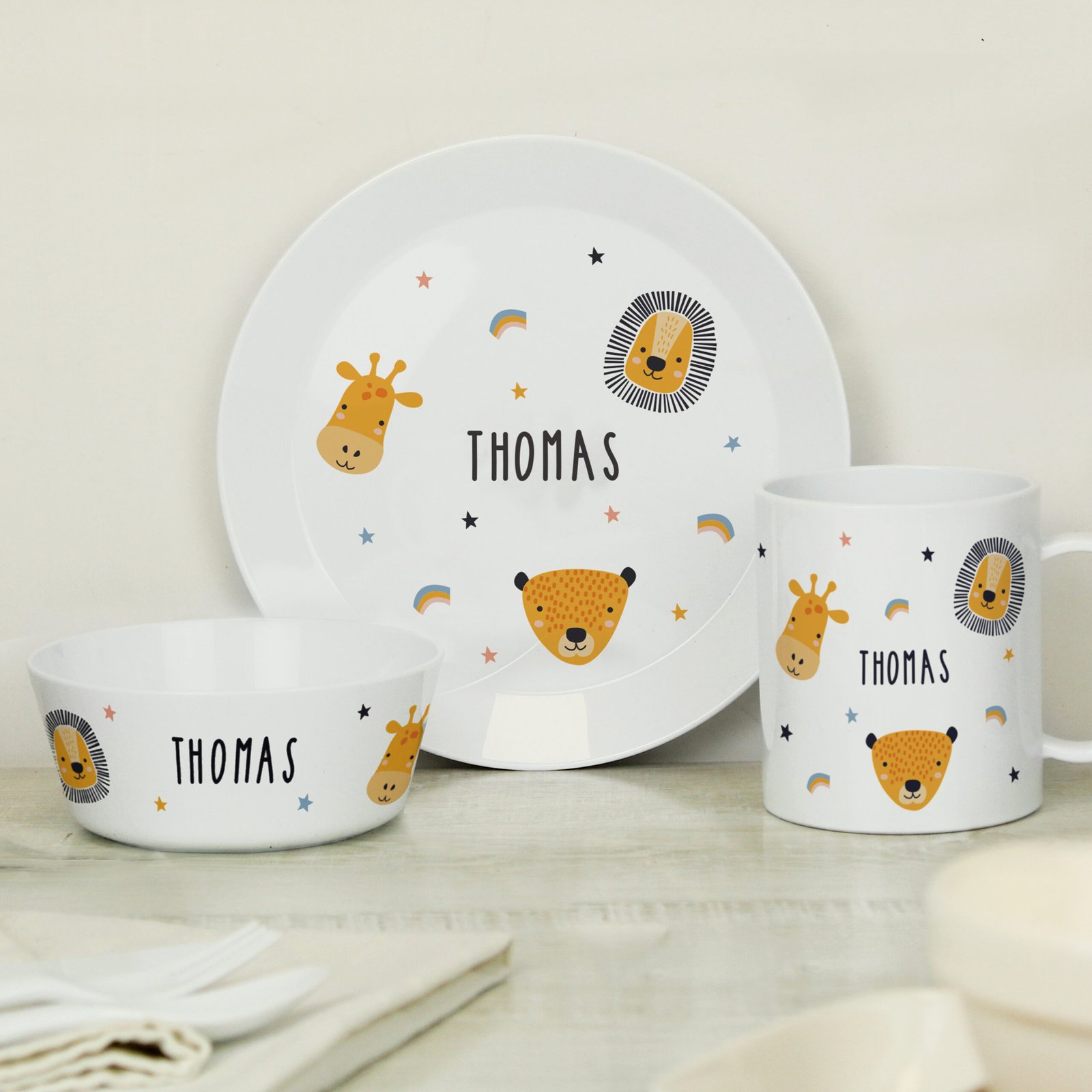Personalised Children’s Safari Animals Design Plastic Breakfast Set