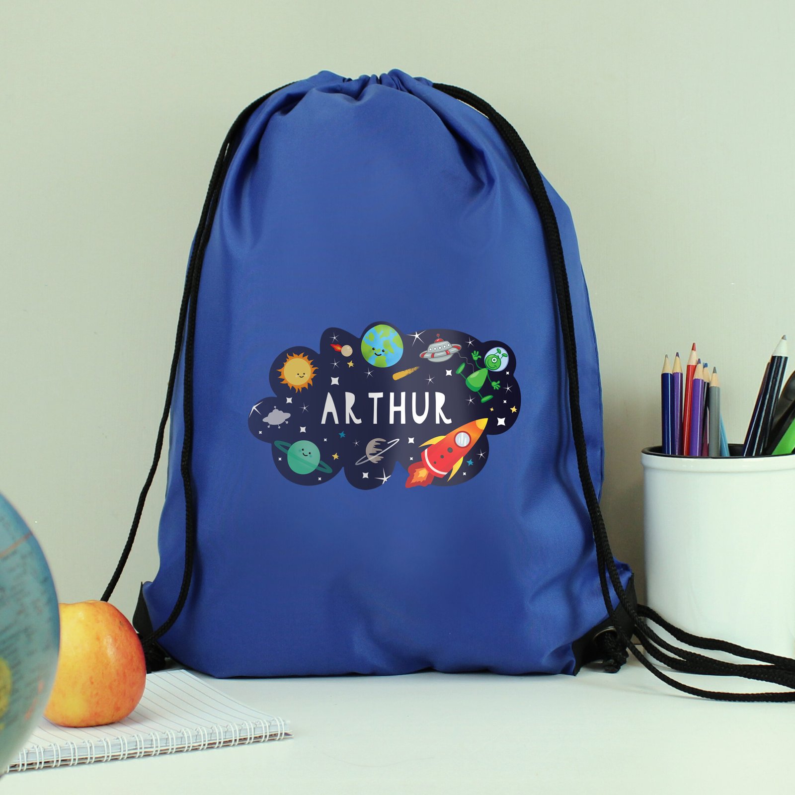 Make school, sports, or club activities extra fun with this vibrant space-themed kit bag. Perfect for little astronauts, this bag is both practical and personalised for a unique touch your child will love.