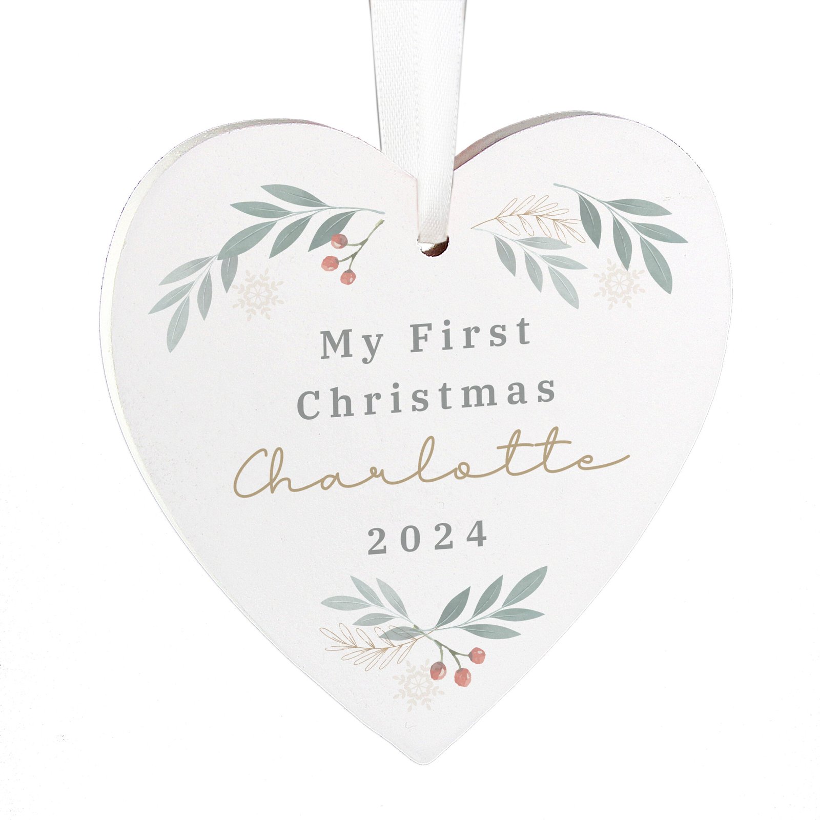 Add a heartfelt, personal touch to your holiday décor with this charming wooden heart decoration featuring a festive foliage design. Perfect for hanging on your Christmas tree, mantel, or as a thoughtful gift, this personalised keepsake makes the season even more special.