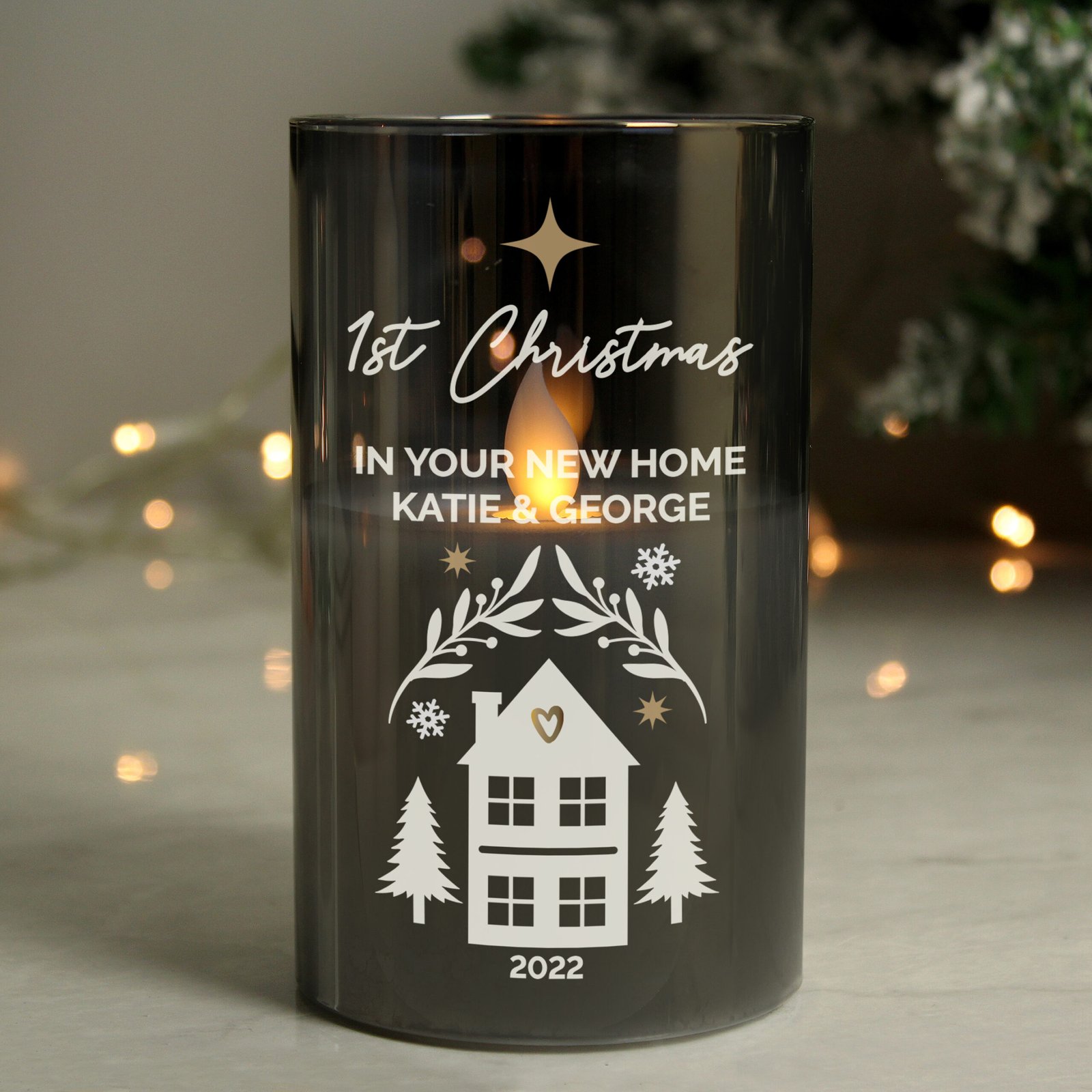 Add a personal touch to your festive décor and create a memorable Christmas keepsake with this charming smoked glass LED candle.