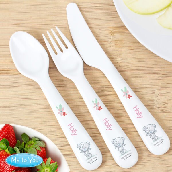 Personalised Tiny Tatty Teddy Woodland Animals Design 3-Piece Plastic Cutlery Set