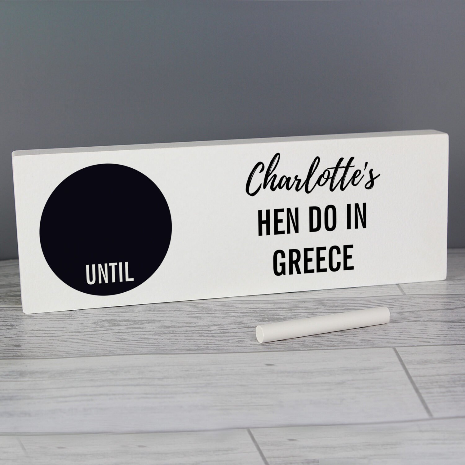 Beautifully crafted from solid wood, this countdown sign features a chalkboard-style section and your own personalised message—making it a thoughtful addition to your home décor or a special gift for someone you love.