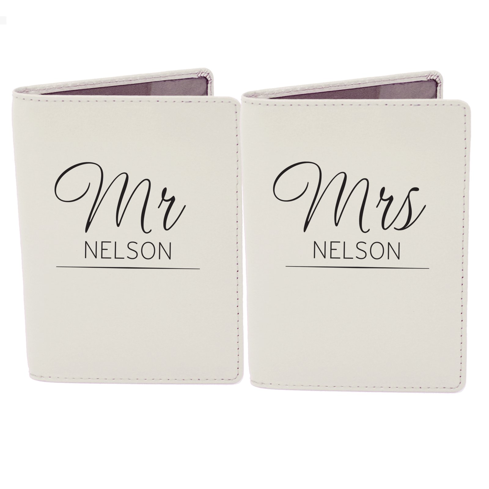 Personalised Classic ‘Mr & Mrs’ Cream Leather Passport Holder Set