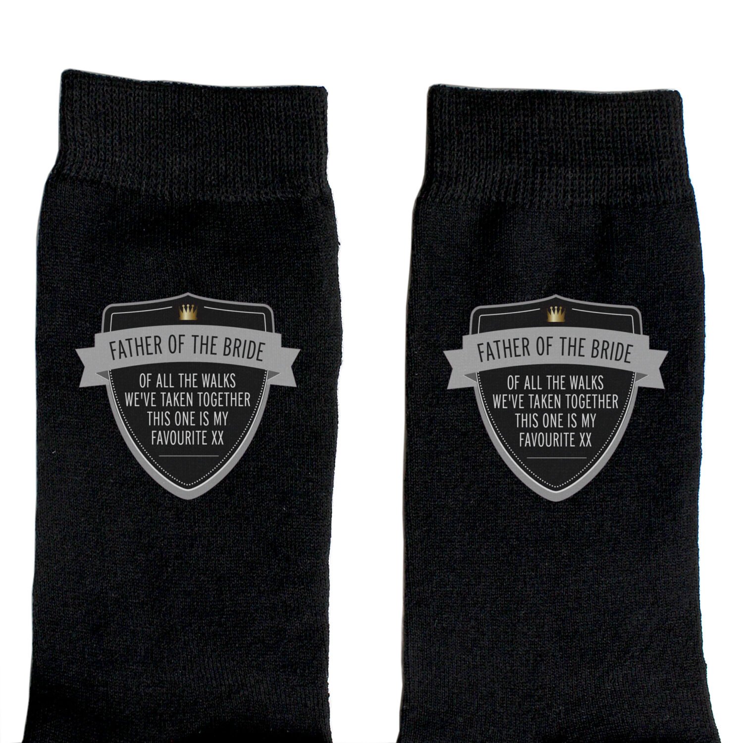 Add a touch of style and sentiment to his sock drawer with our Personalised Classic Shield Design Men’s Black Socks. Featuring a bold shield motif and fully customisable text, these socks make a thoughtful and practical gift for any special occasion.