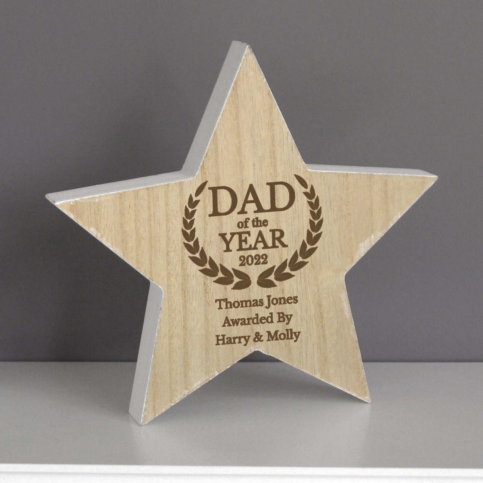 Personalised ‘Dad of the Year’ Rustic Wooden Star Decoration