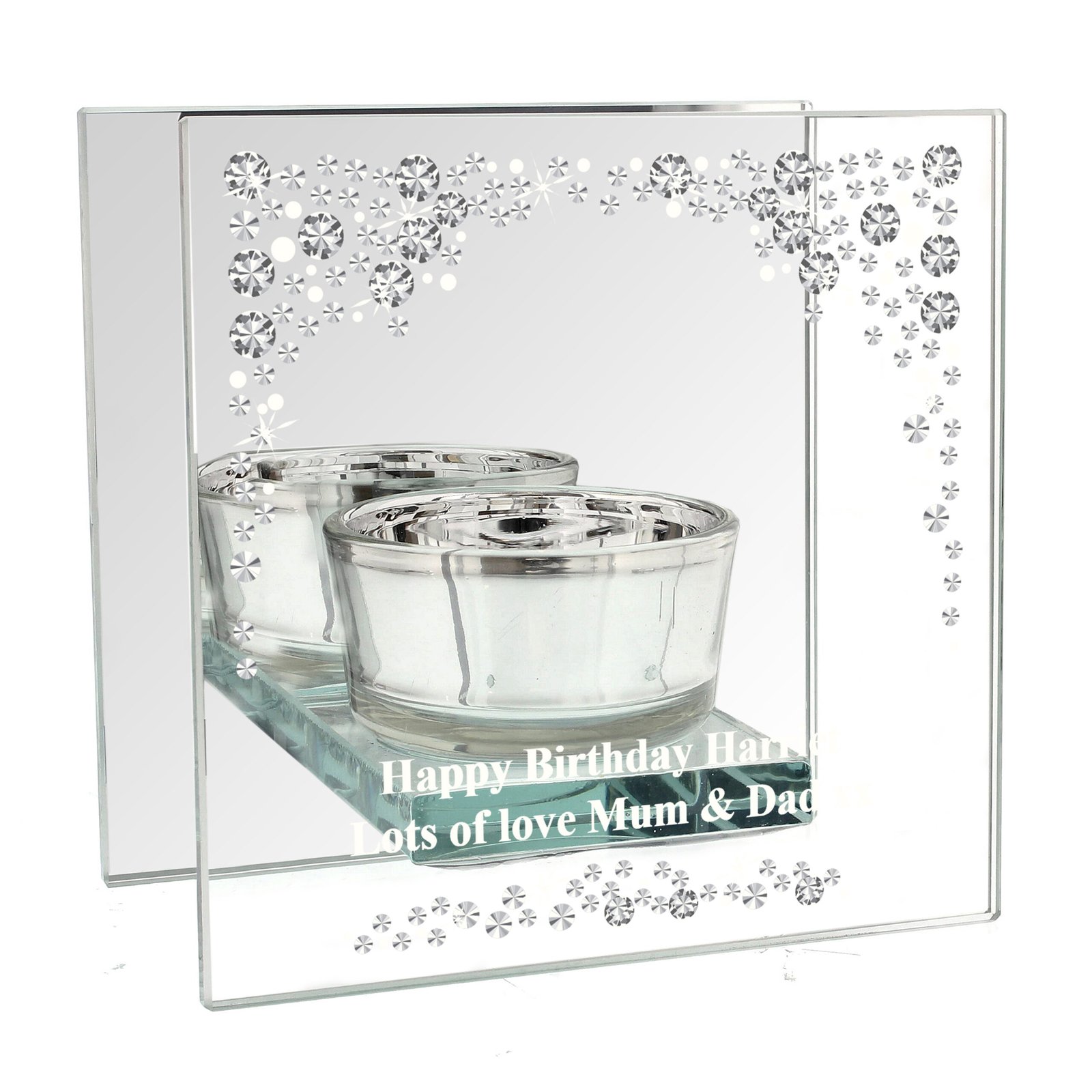 Personalised Diamante Effect Mirrored Glass Tea Light Candle Holder