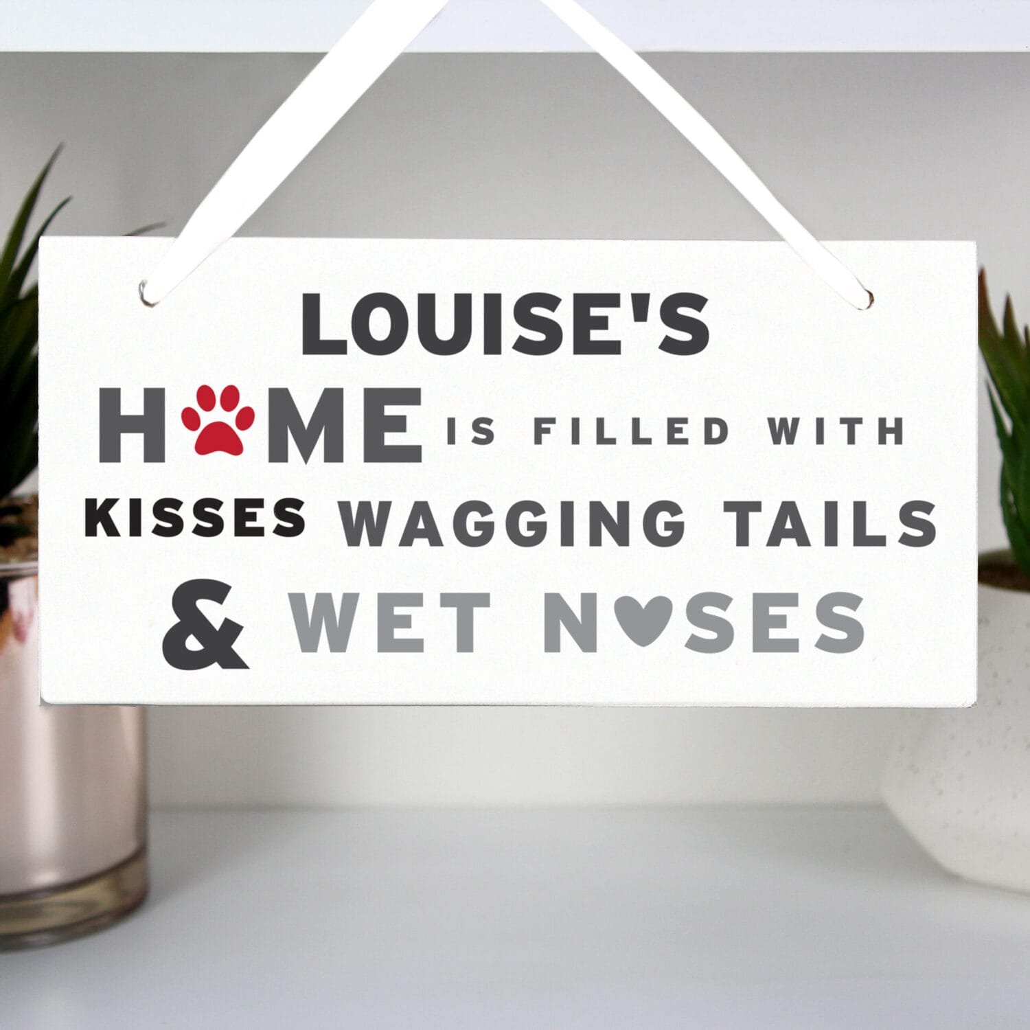 Personalised Dog ‘Wagging Tails & Wet Noses’ Hanging Wooden Sign
