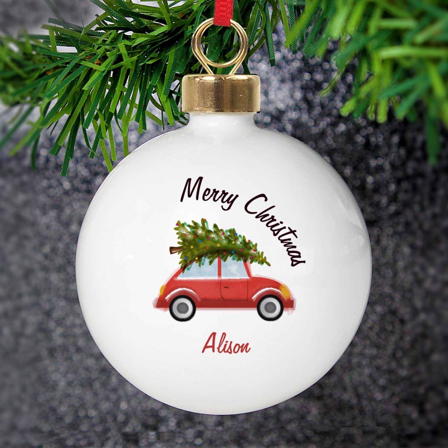 Personalised Driving Home For Christmas Ceramic Bauble
