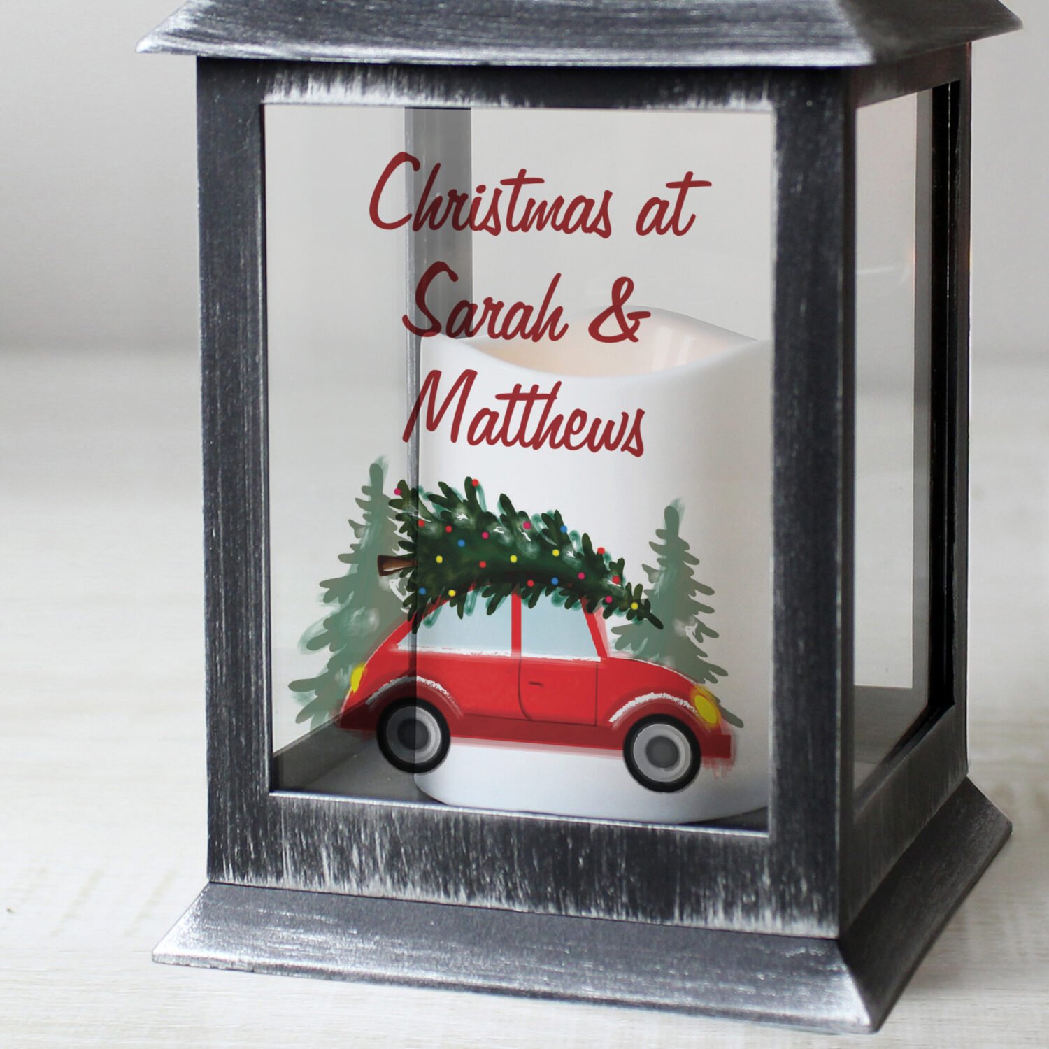 Create a warm and welcoming festive atmosphere with this Personalised ‘Driving Home For Christmas’ Rustic Black Plastic Light-up Lantern. Featuring a charming design and a soft flickering flame effect, this battery-powered lantern is the perfect decorative piece to light up your home during the holidays.