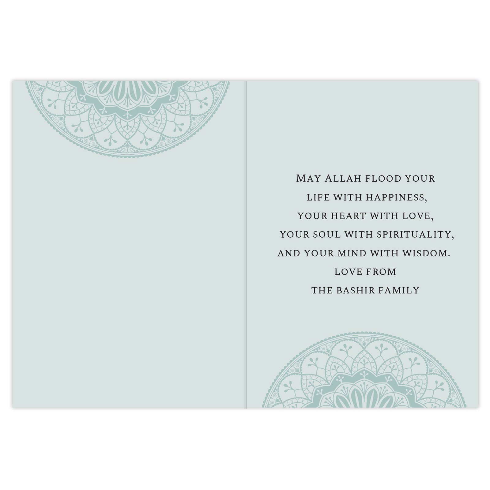 Send warm wishes this Eid with a personalised greetings card, perfect for celebrating the end of Ramadan. Fully customisable on both the front and inside, this card makes a thoughtful and memorable gift for family, friends, or loved ones.