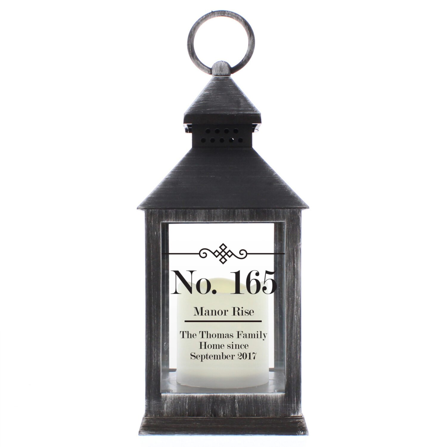 Personalised Elegant Diamond Design Rustic Black Plastic Light-up Lantern