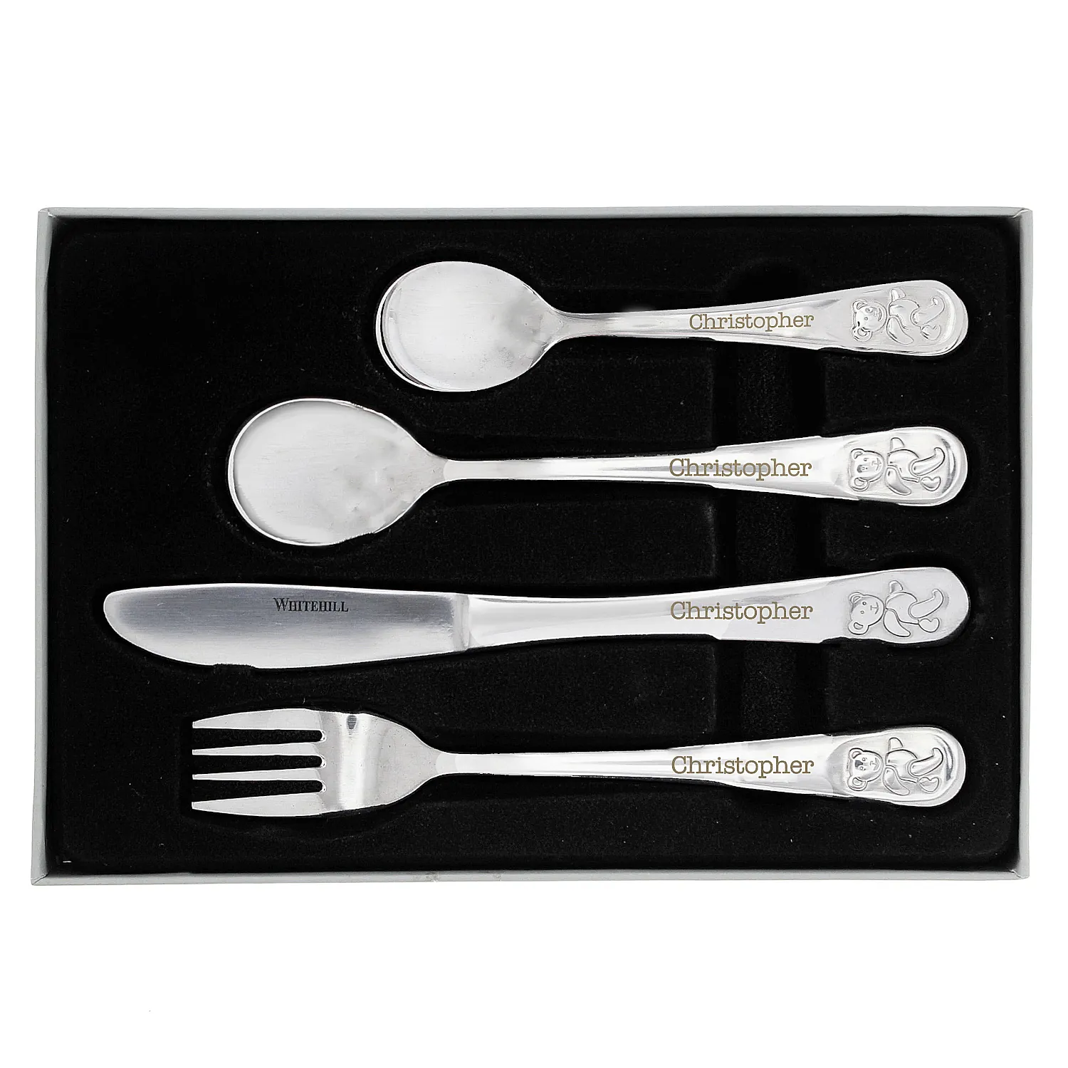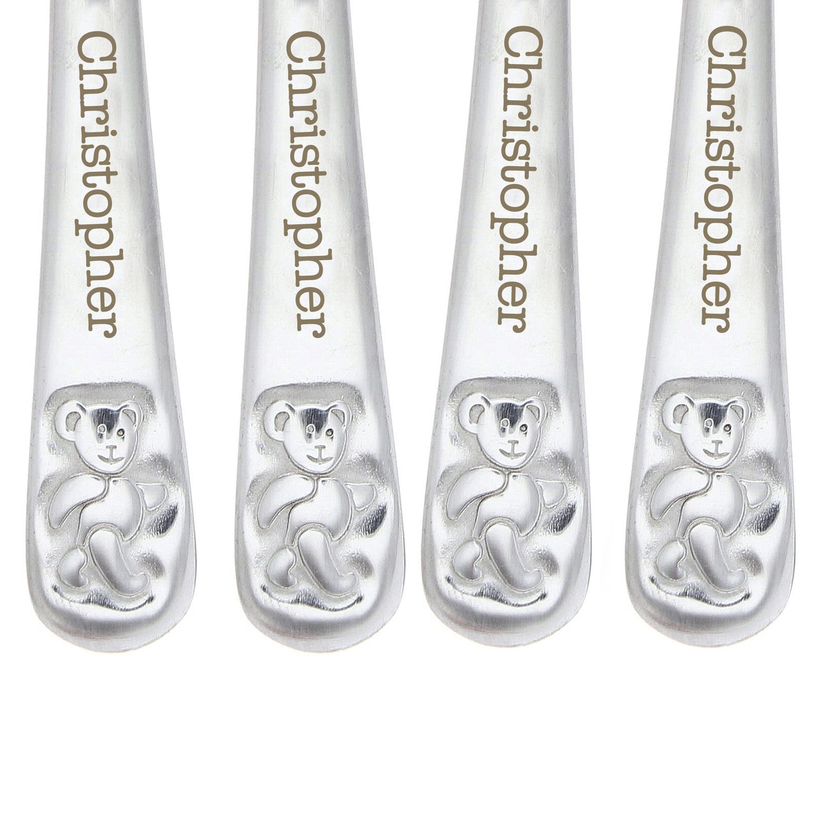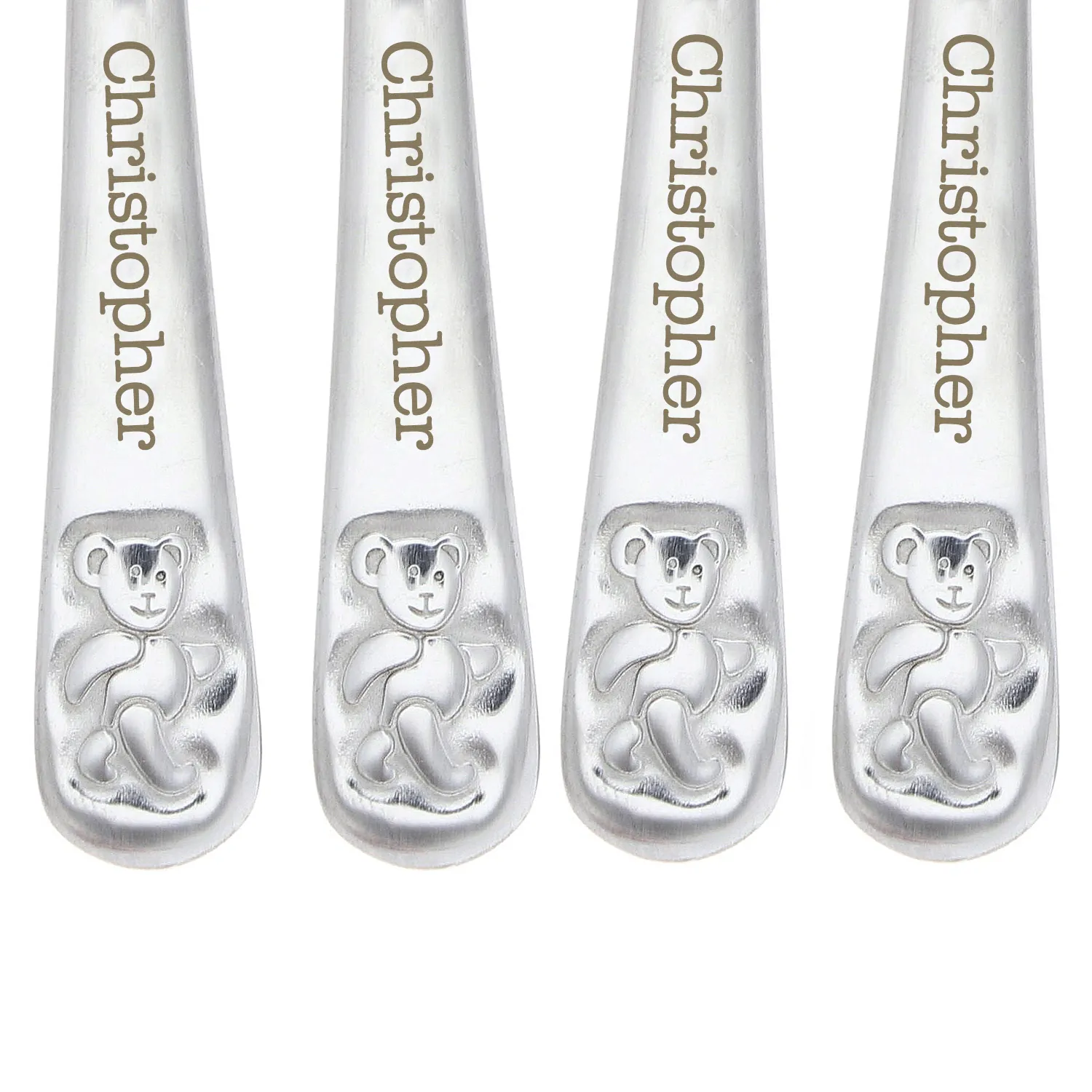 Personalised Embossed Teddy Design Children’s 4-Piece Stainless Steel Cutlery Set