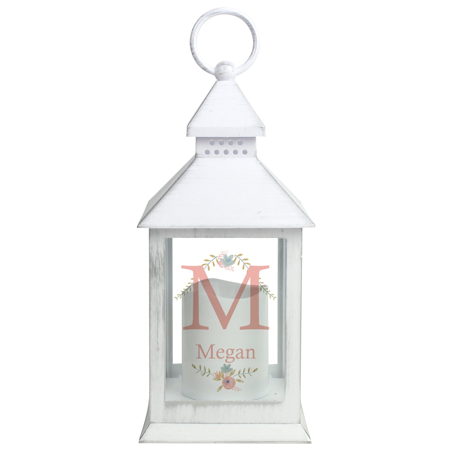 Personalised Floral Bouquet Design Rustic White Plastic Light-up Lantern