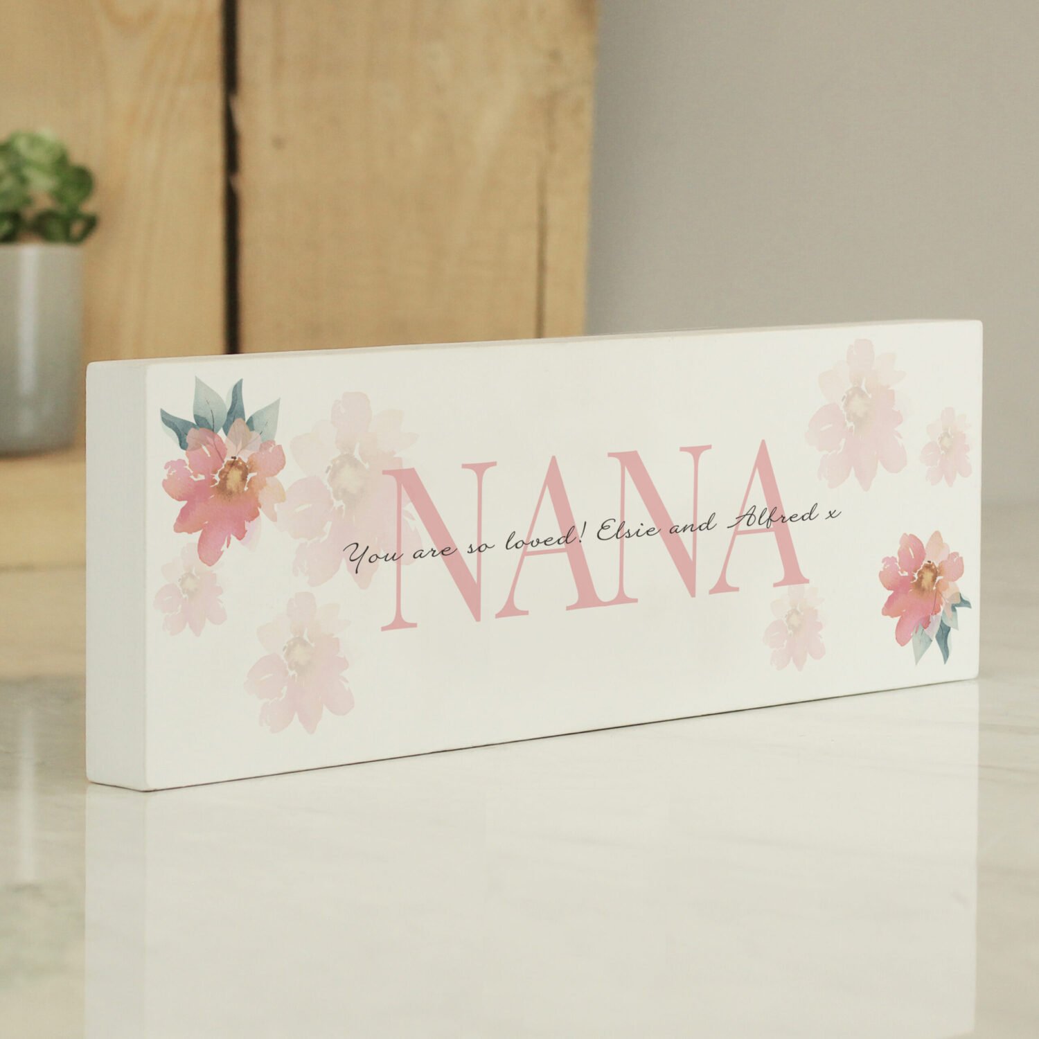 Personalised Floral Sentimental Design Wooden Mantel Decoration
